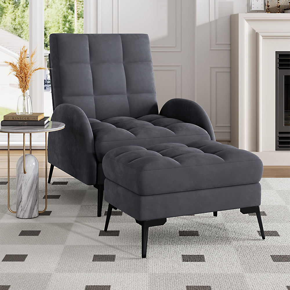 The Recliner Armchair with Ottoman Footstool offers a stylish and comfortable place to unwind at home. Upholstered in soft frosted velvet with a supportive foam filling, it brings both luxury and durability to your living room. The matching ottoman can be used as a leg rest for added relaxation or as extra seating when guests arrive. Supported by strong metal legs, the set blends ergonomic comfort with a modern aesthetic. Perfect for reading, watching shows or simply relaxing, it enhances the atmosphere of any space.