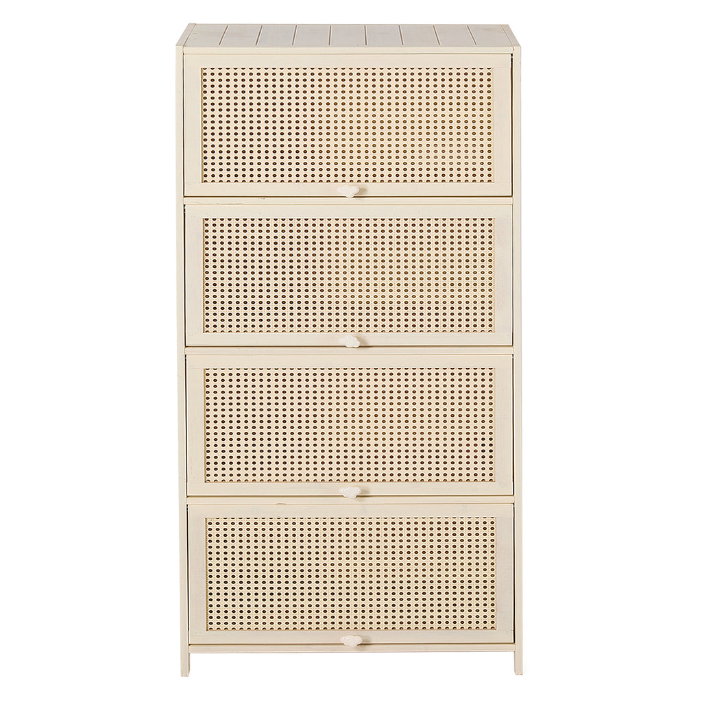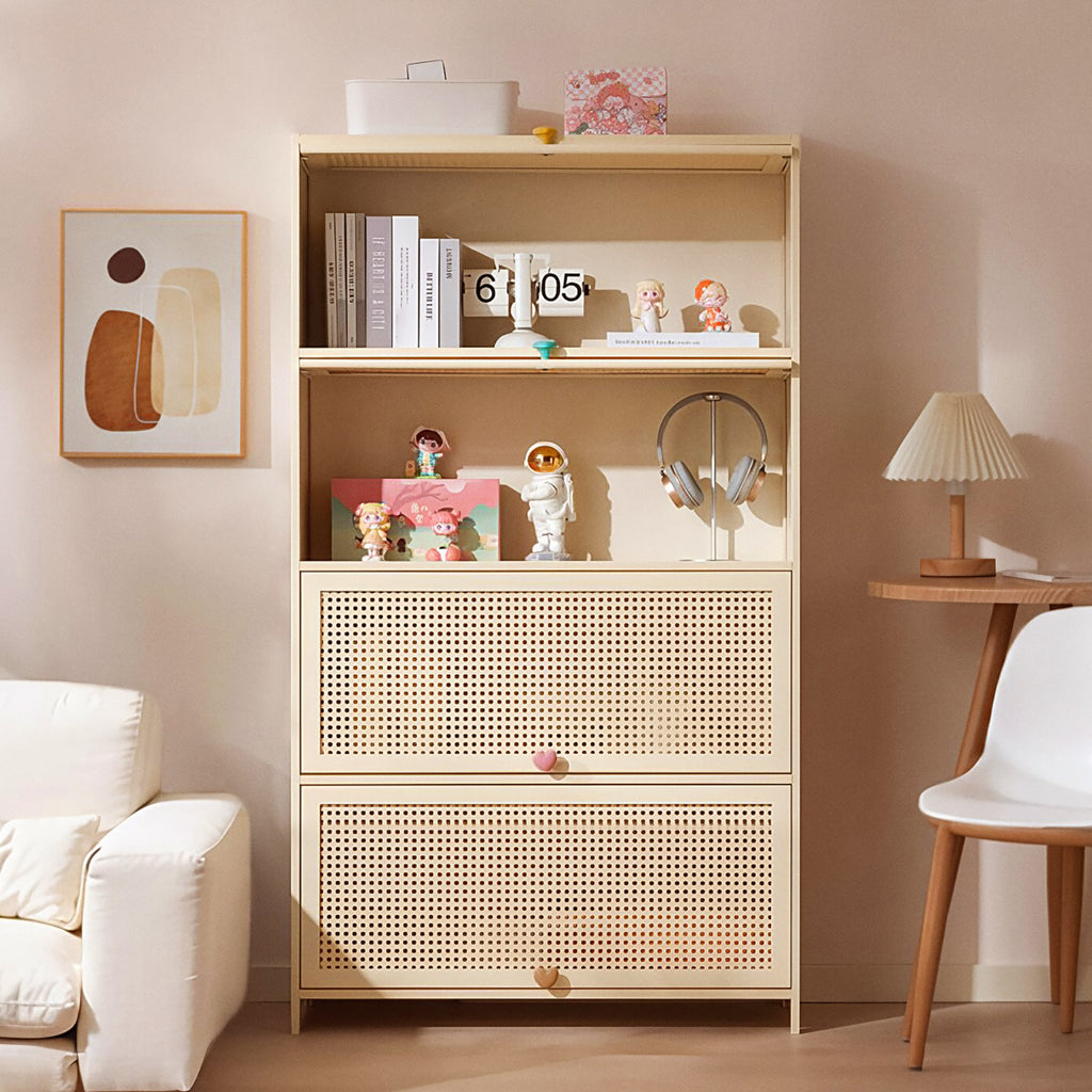 -Rattan-textured door panels add natural warmth and texture