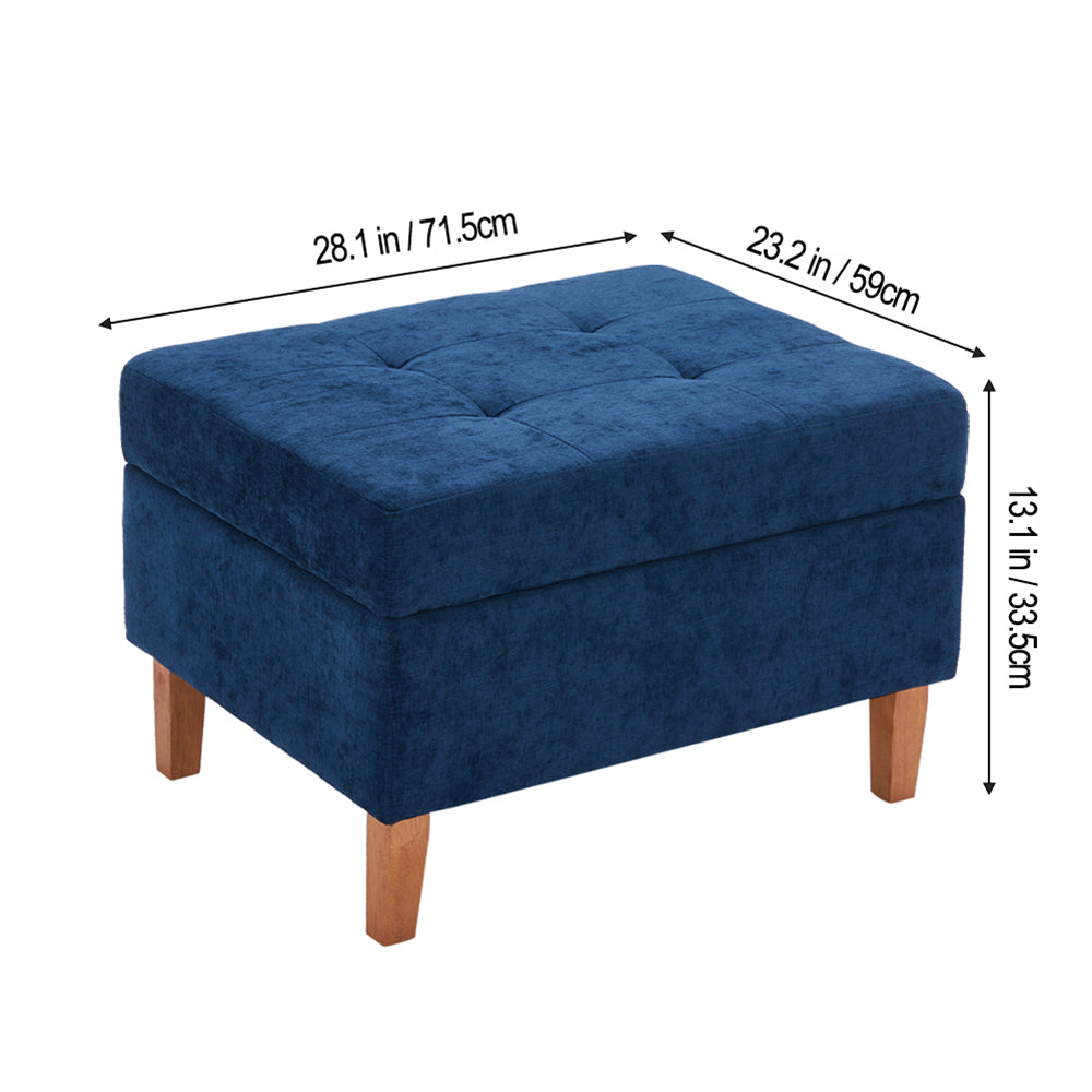 Livingandhome Chenille Storage Bench with Rubberwood Legs