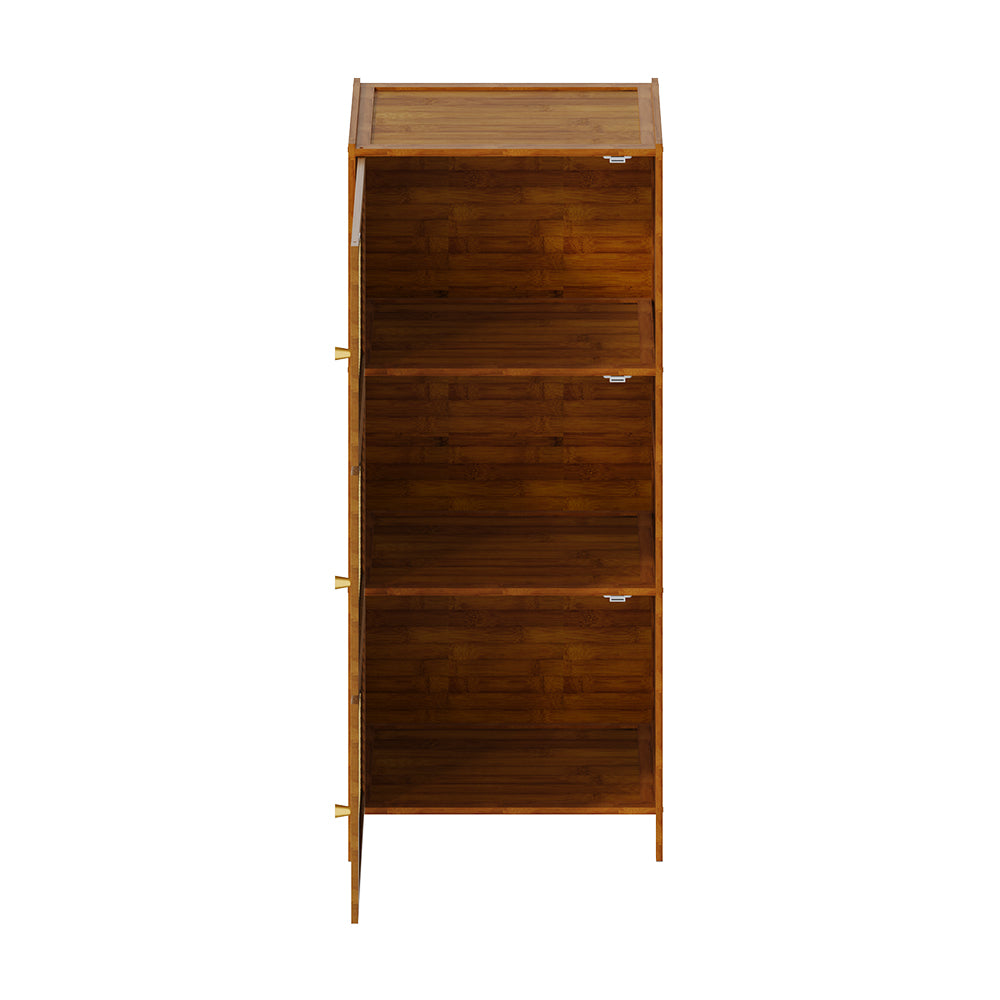 This 3-tier bamboo bookcase combines style and practicality, offering a compact solution for modern homes. The rattan-style doors provide a breathable and elegant appearance, perfect for storing books or decorative items. Crafted from high-density bamboo, it delivers sturdy and eco-friendly support. Its vintage-inspired handles make access simple while the polished surfaces ensure safe daily use. Ideal for living rooms, bedrooms, or studies, it adds natural charm to any interior.