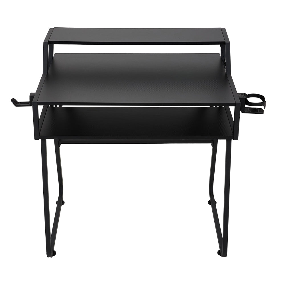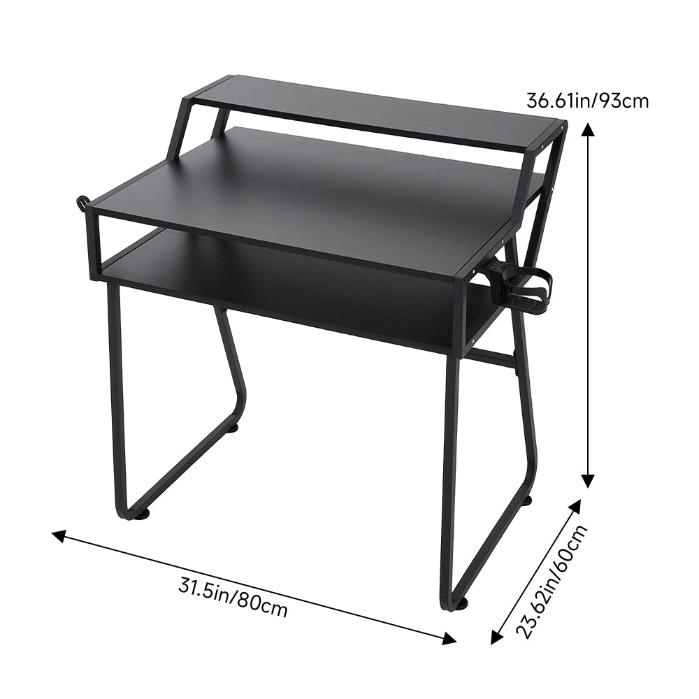 Transform your gaming or work experience with this multifunctional gaming desk. Designed with an elevated monitor shelf, it helps improve posture while creating more room for your gear. The steel frame and refined surface deliver durability and style, while the built-in cup holder and headset hook keep essentials close at hand. Easy to assemble and thoughtfully structured, this desk combines comfort, organization, and reliability for gamers and professionals alike.