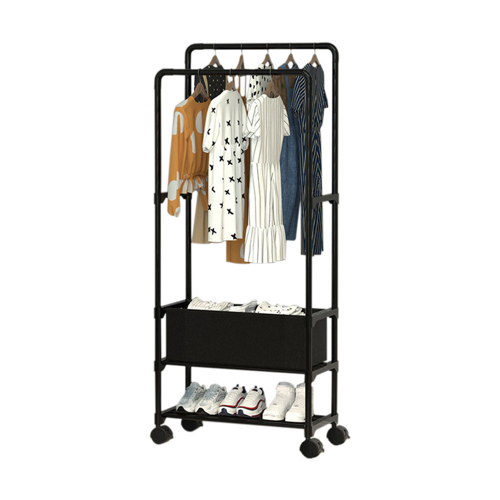 Livingandhome Double Rod Metal Clothes Rack on Wheels