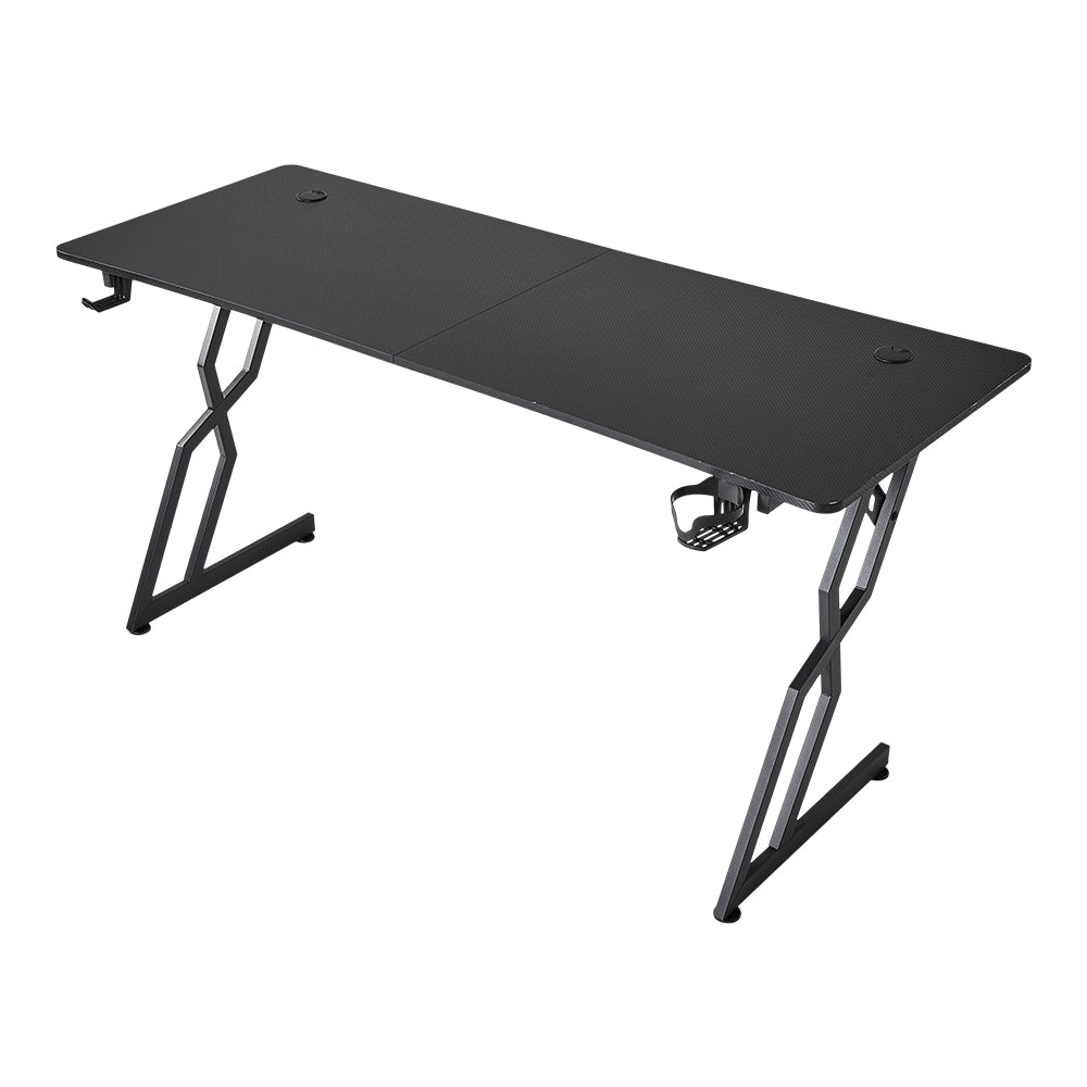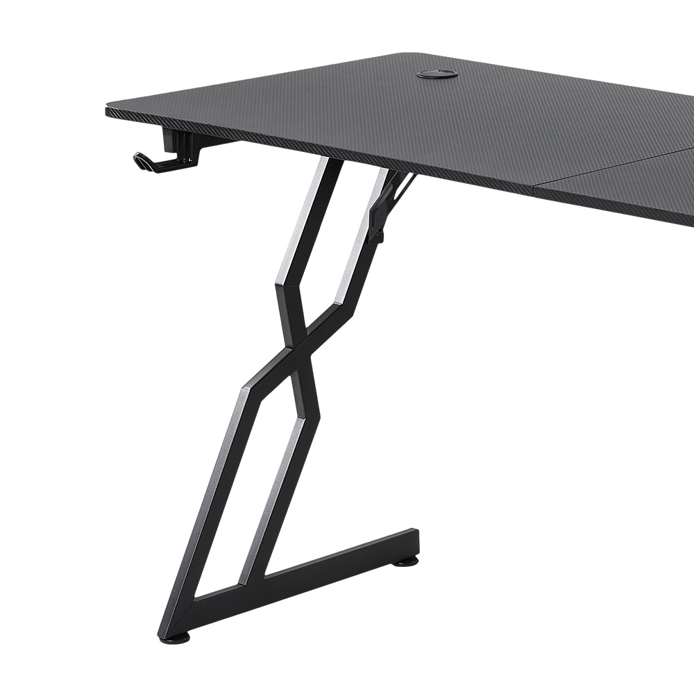This sleek gaming desk combines durability, comfort, and smart functionality to upgrade your setup. The spacious black surface provides ample room for monitors, keyboards, and other essentials, while the strong steel frame supports up to 75kg with ease. Designed for convenience, it comes with a built-in cup holder and headphone hook to keep your space tidy and spill-free. Added features like cable management, a large mouse pad, and adjustable foot pads make it an ideal desk for both gaming and work.