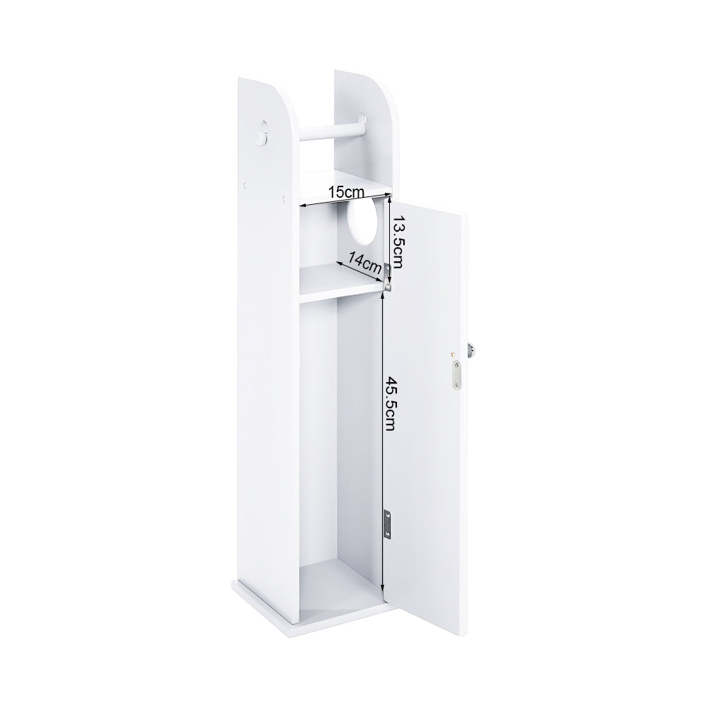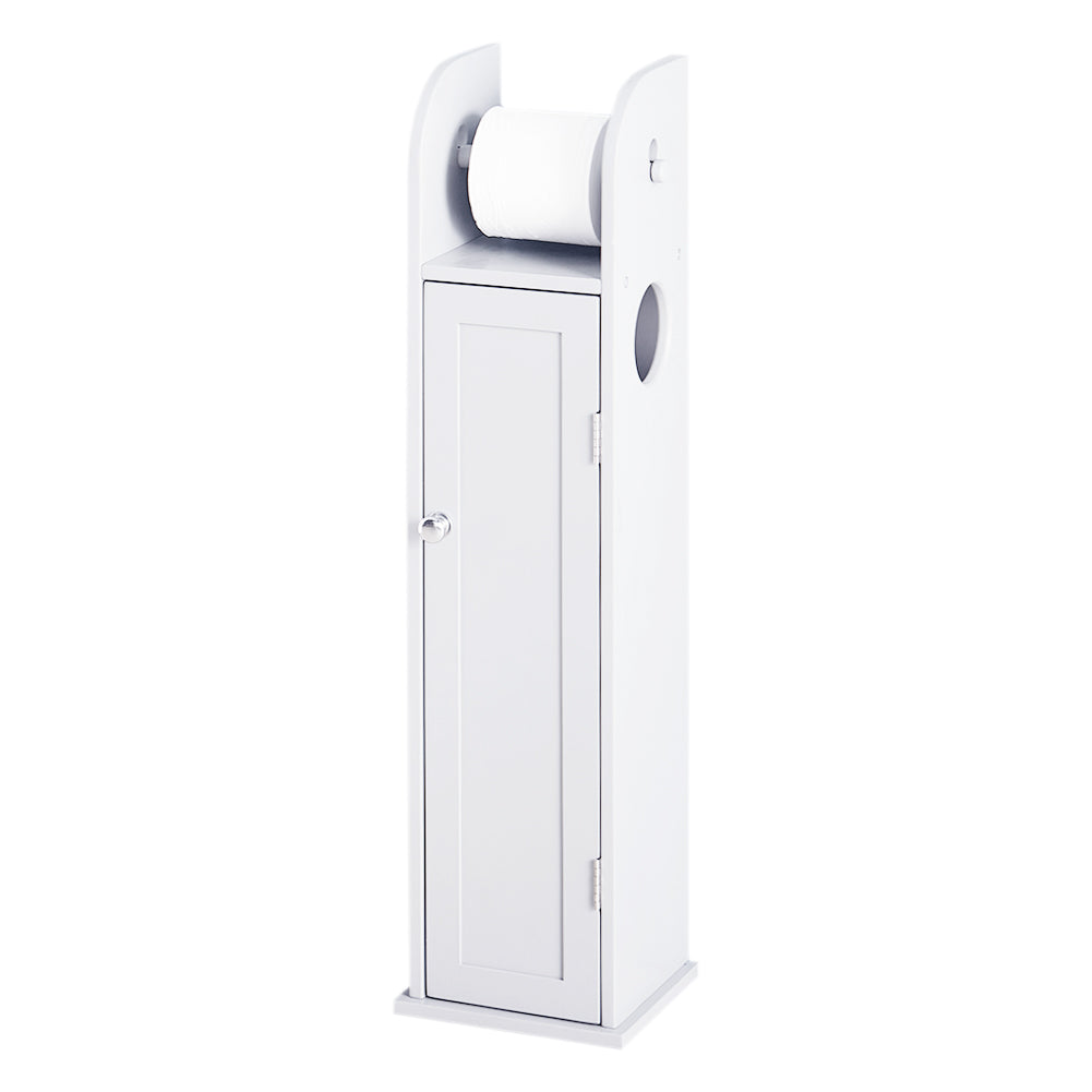 Maximise storage in small bathrooms with this wooden bathroom cabinet. Crafted from sturdy MDF, it offers a practical solution with a top shelf and a side hole for quick toilet roll access. The lower cabinet provides two tiers of hidden storage, perfect for keeping toiletries and cleaning supplies organised. Its sleek white finish blends seamlessly with any décor, while the smooth surface makes cleaning effortless.