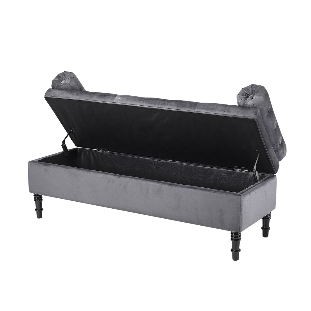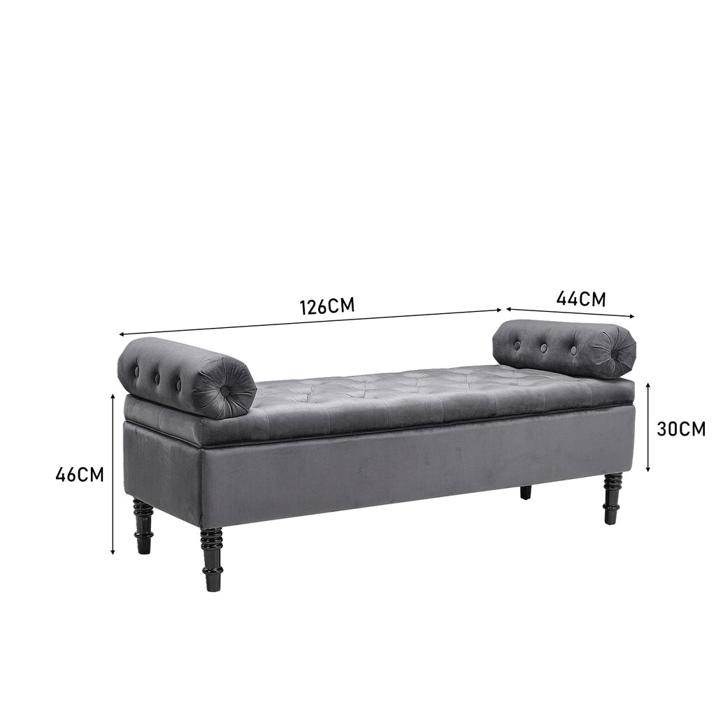 Enhance your home with this elegant storage bench, the perfect finishing touch for any room. It provides discreet space to store blankets at the foot of your bed or toys in the living area, while adding a stylish element to your décor. Upholstered in sumptuous fabric, the bench offers a cosy extra seat. The two bolstered side cushions lend a vintage charm and provide gentle support for your back or head.