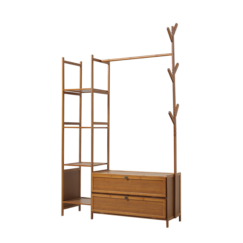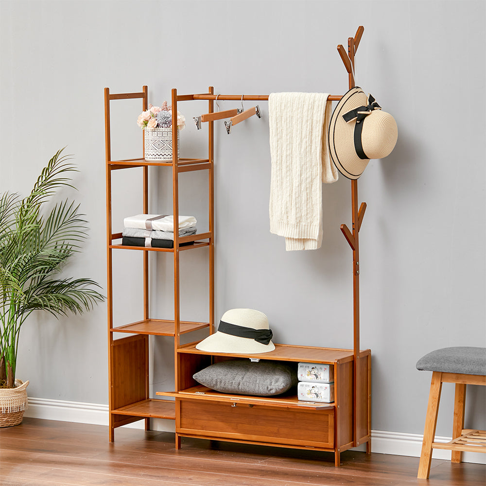 Livingandhome Freestanding Bamboo Clothes Rack with Storage Shelves