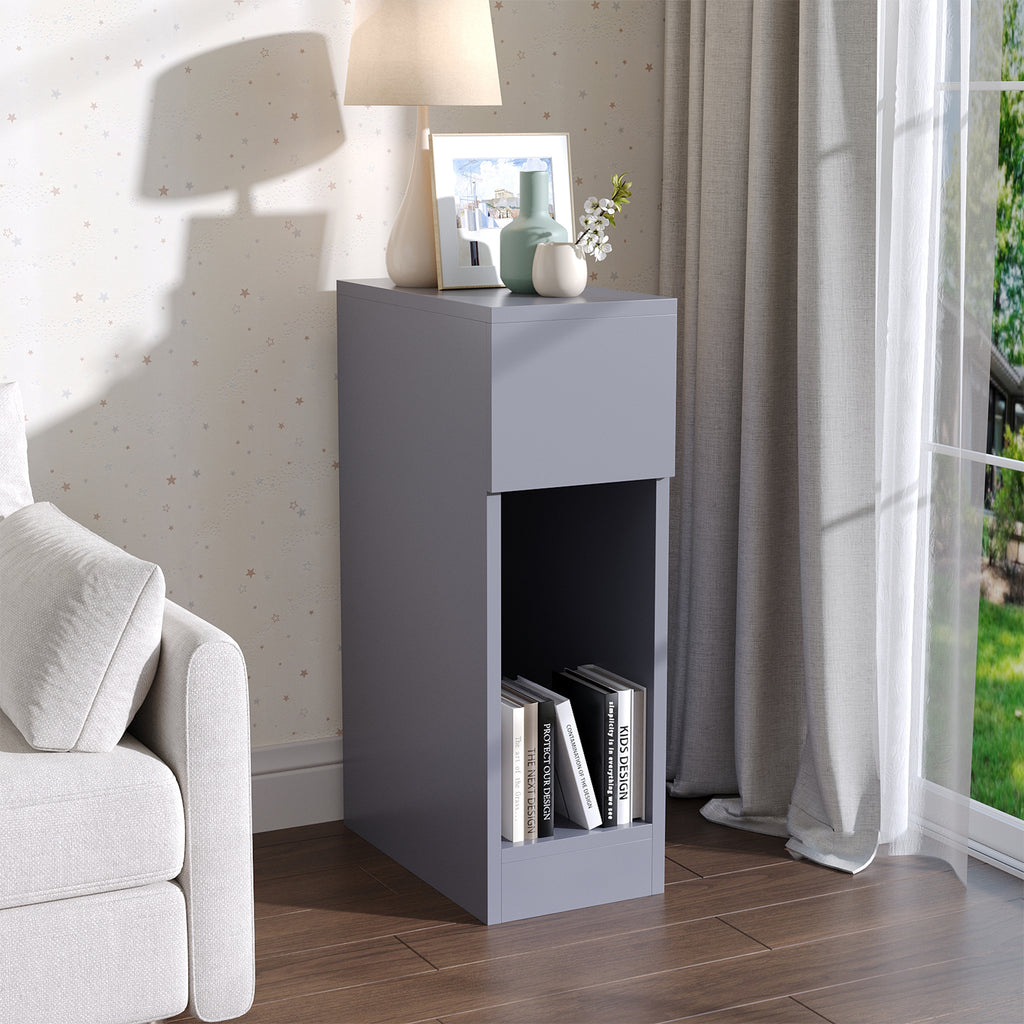 Add minimalist style and practical storage to your bedroom with this Bedside Table. Featuring a clean design, a flat top, an open shelf, and a drawer, it provides easy access to essentials while complementing any interior.