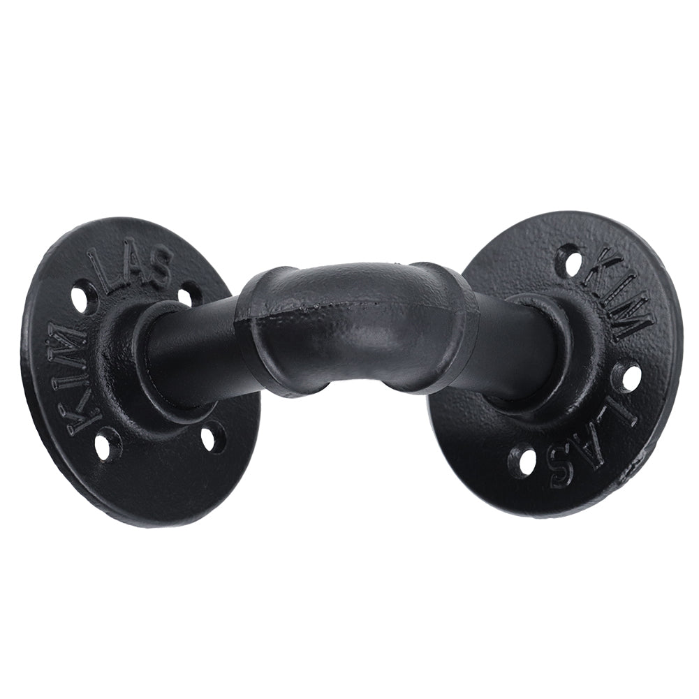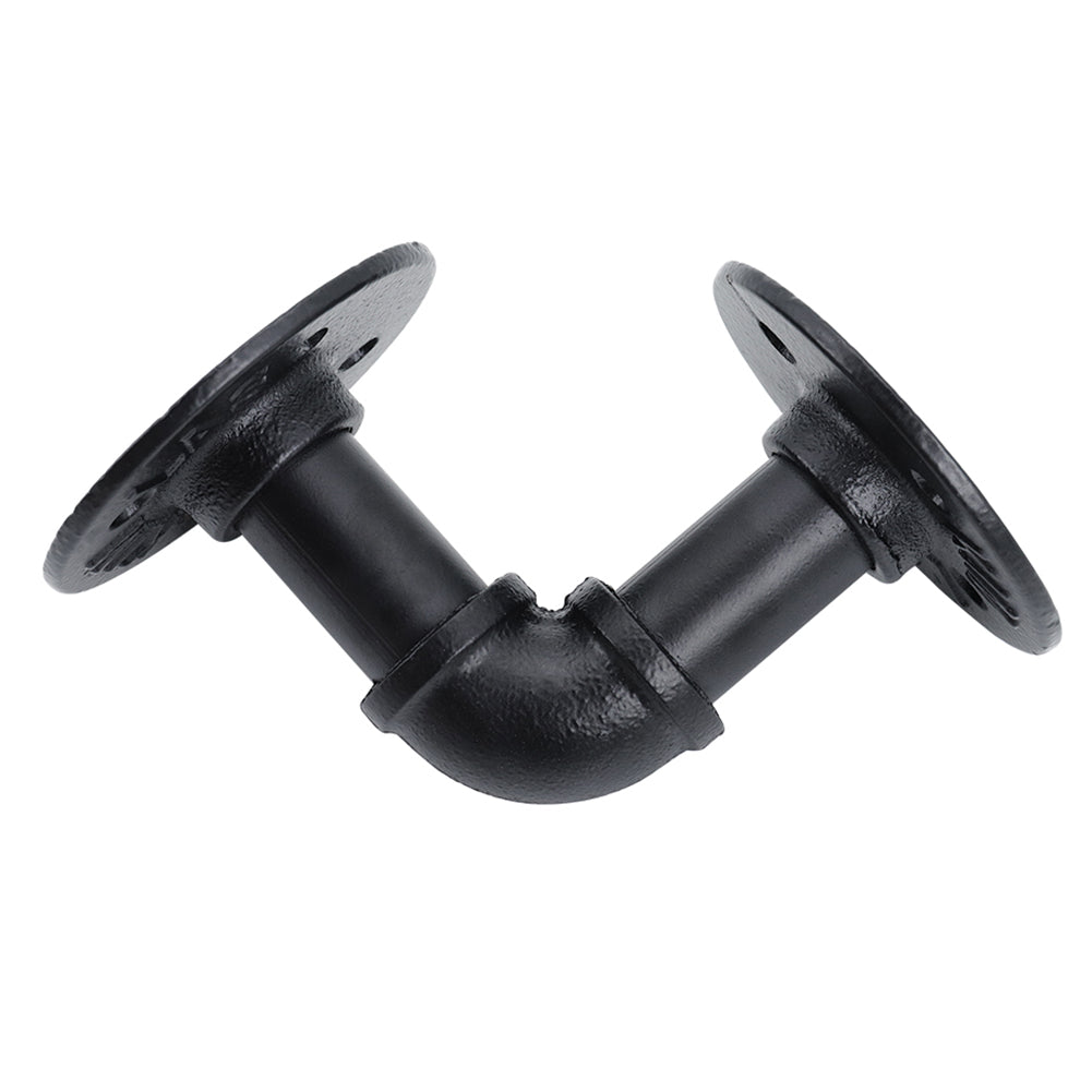 Upgrade your storage and décor with this 2-pack industrial iron pipe shelf brackets. Crafted from sturdy iron with a durable black powder coating, they resist rust, wear, and chipping. The L-shaped design offers reliable support for shelves, perfect for books, décor, or display items. These versatile brackets bring a rugged, vintage charm to homes, studios, cafes, or bookstores. Easy-to-install pre-drilled holes make mounting hassle-free while elevating your spaceâ??s industrial aesthetic.