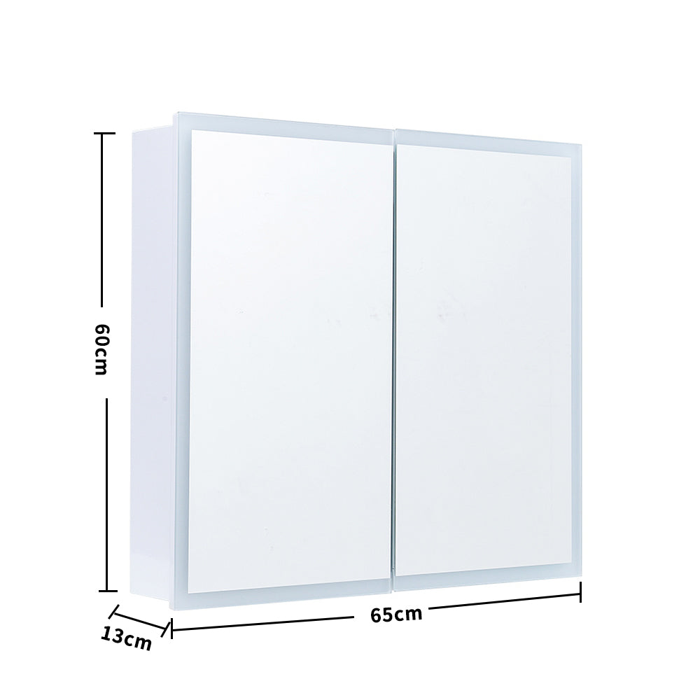 Maximise storage in small bathrooms with this Livingandhome Double-Door Mirror Cabinet. Its frameless design adds a sleek, modern touch, while the sensor-activated LED light provides safe and convenient illumination. Behind the dual mirrored doors, adjustable glass shelves offer ample space to organise your bathroom essentials.