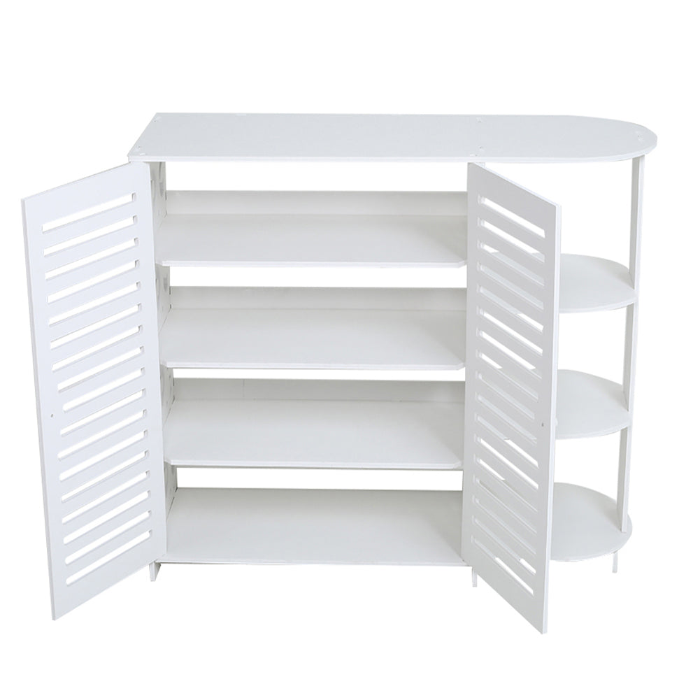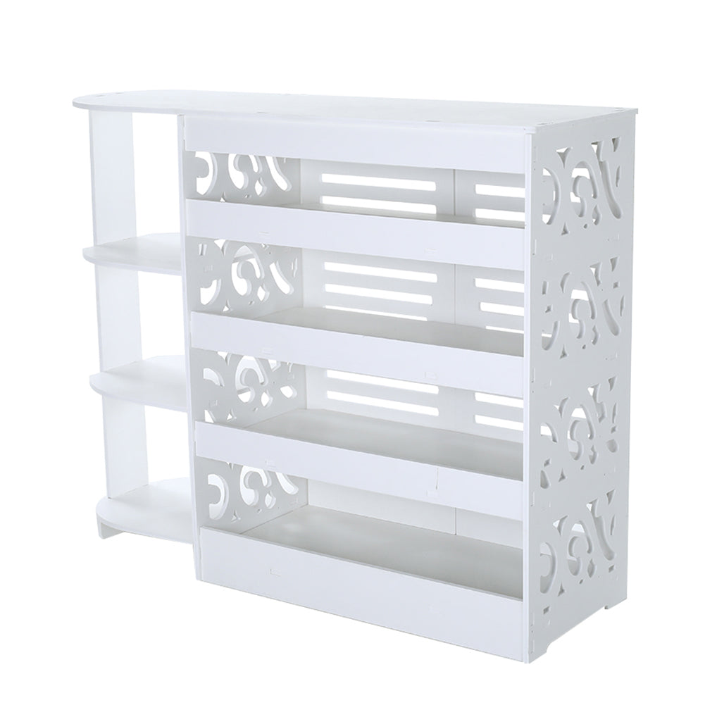 Elegant, charming and above all practical, this shoe cabinet from Livingandhome is designed for everyday use. With four tiers, it offers ample space to store your footwear with ease. The carved side patterns add a touch of distinction, while the raised base helps to prevent dust from collecting underneath. Ideal for placing in the hallway, it also includes three open tiers, giving you handy extra storage for essentials you need to grab on your way out.