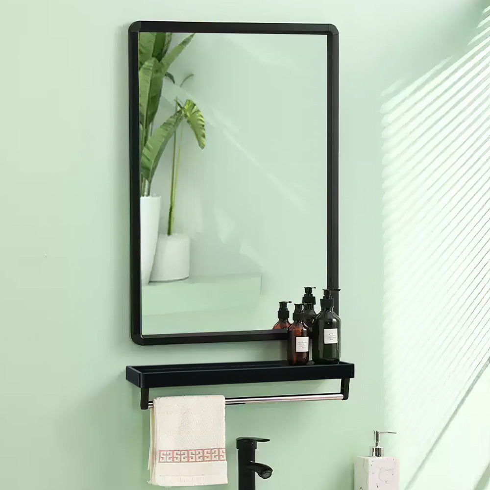 This black bathroom mirror features a rapid anti-fog surface, ensuring a clear reflection immediately after your shower. The advanced anti-shatter film prevents glass from breaking into dangerous shards, offering added safety. A sturdy shelf provides ample storage for your daily bath essentials, while a foldable towel bar adds convenient functionality. Constructed from durable aluminium with smooth ABS edges, it is both long-lasting and safe to use. Perfect for modern bathrooms seeking style and practicality.