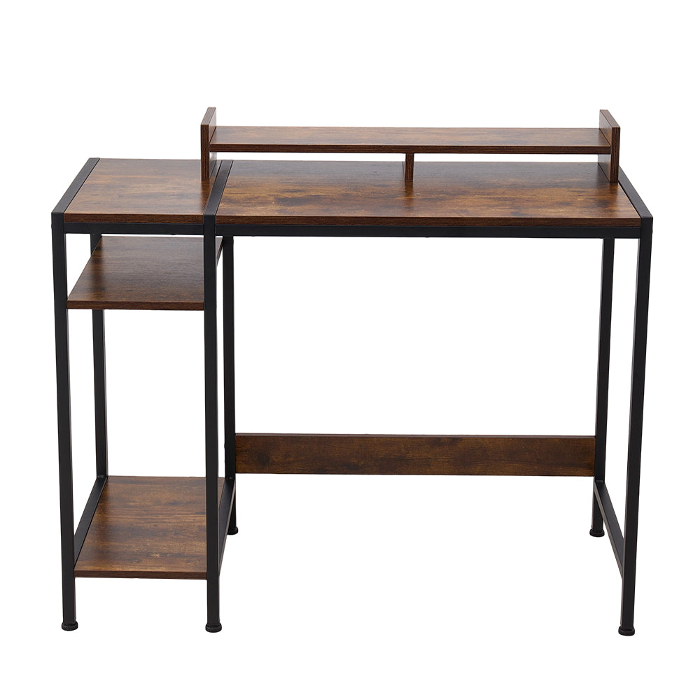 The Office Desk with Monitor Stand provides a practical and stylish solution for home or professional workspaces. Its spacious right-hand side features a monitor stand to reduce neck strain, while the three-tier left side offers versatile storage for files, stationery, and essentials. Crafted from durable density board with a sturdy metal frame, it ensures long-lasting stability. Rounded edges enhance safety and style, making it suitable for both work and study. Easy assembly with included instructions allows a quick and hassle-free setup.