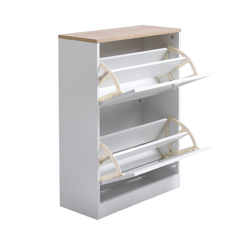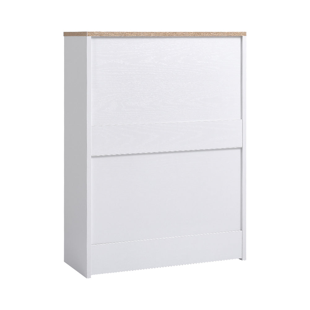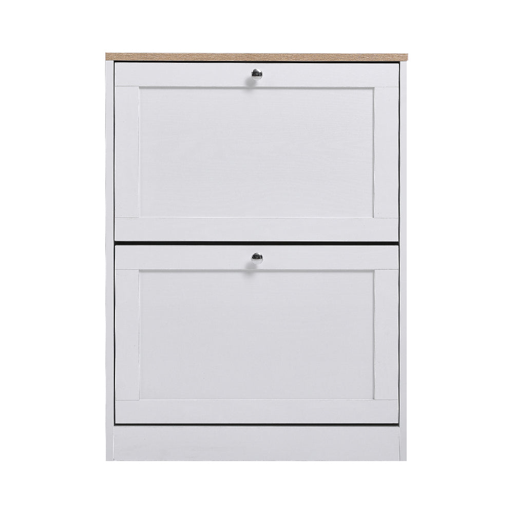 Keep your footwear organized and easily accessible with the Stylish Wooden Shoe Organizer. Designed with a practical flip-down mechanism, this cabinet allows you to quickly reach your shoes while keeping them neatly stored. Its high-quality wooden construction with a clean white finish makes it a stylish addition to any hallway, living room, or closet. With two drawers, it can hold up to 8 pairs of shoes, helping maintain a clutter-free space.