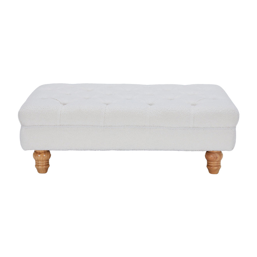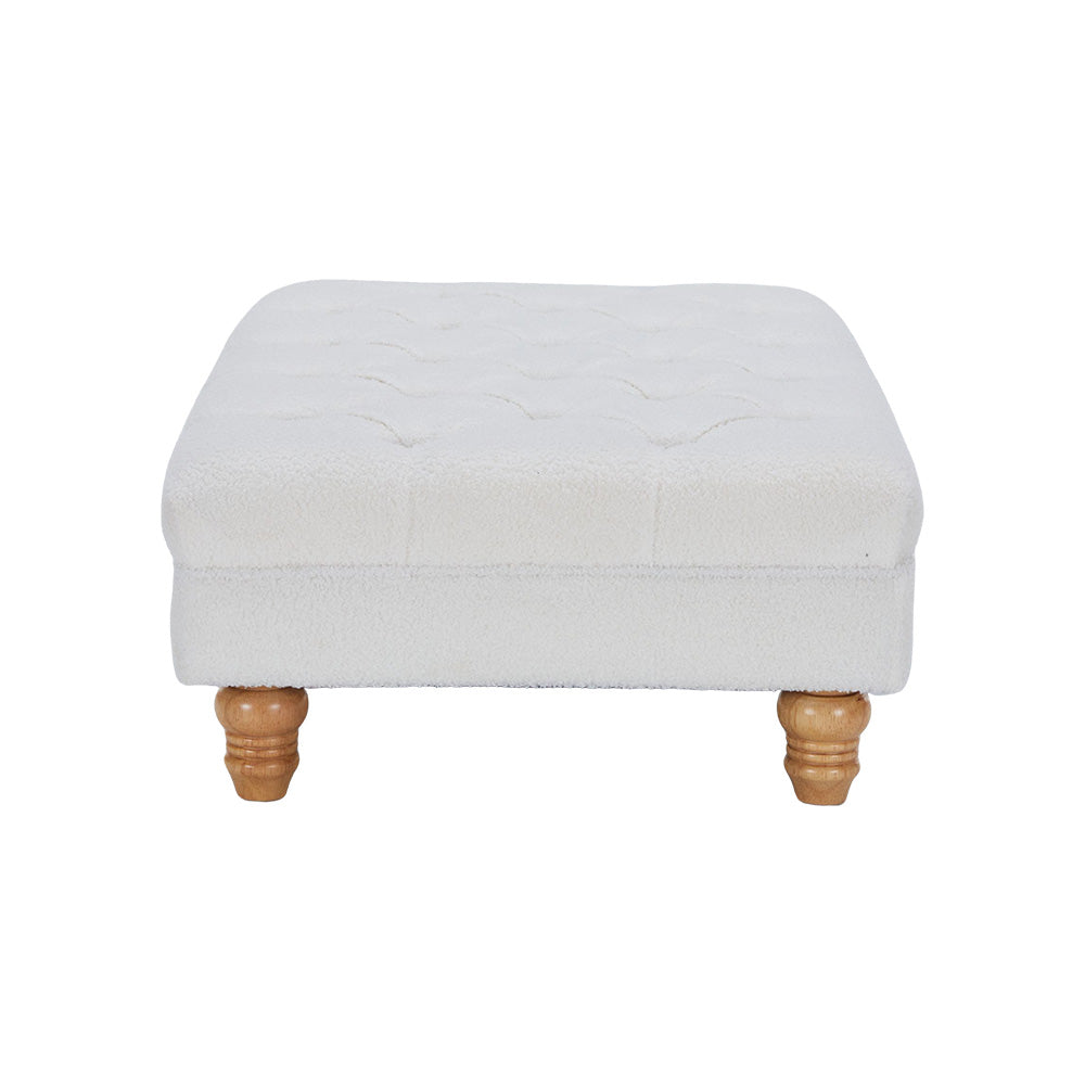Combine comfort and style with this White Footstool. Upholstered in soft teddy fleece with high-density sponge filling, it provides a comfortable seating experience while adding a touch of elegance to any room. Classic quilting adds visual texture, making it ideal for the living room, bedroom, or study.