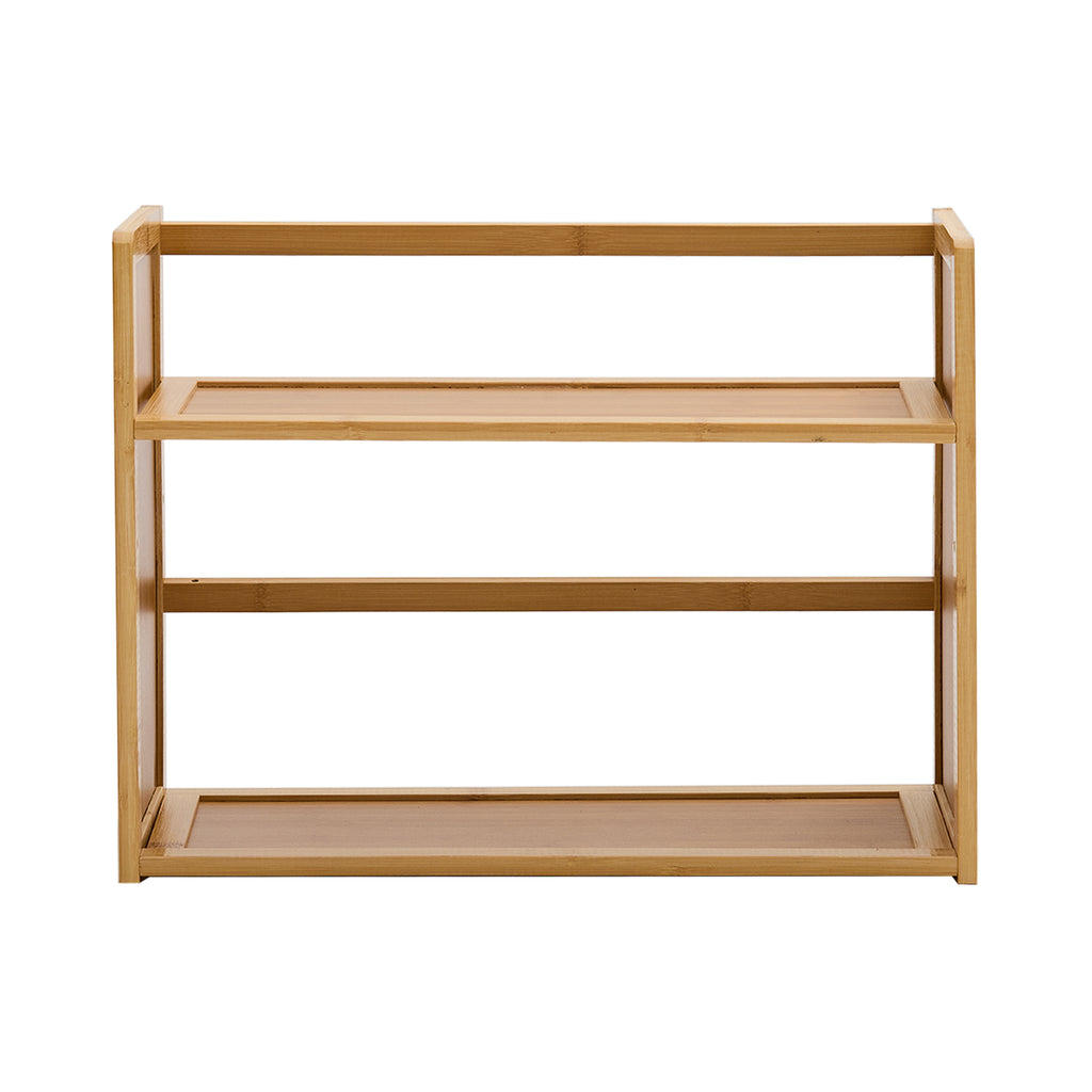 Add natural charm and organisation to your desk with this 2-tier bamboo desktop bookshelf. Crafted from thickened bamboo, it offers strong durability and stability while bringing a warm wood tone to your space. The open two-tier design is perfect for books, office supplies, or décor, while the elevated guardrail and reinforced back crossbars prevent items from falling. Compact yet practical, it helps maximise vertical space and keep your desk neat and clutter-free.
