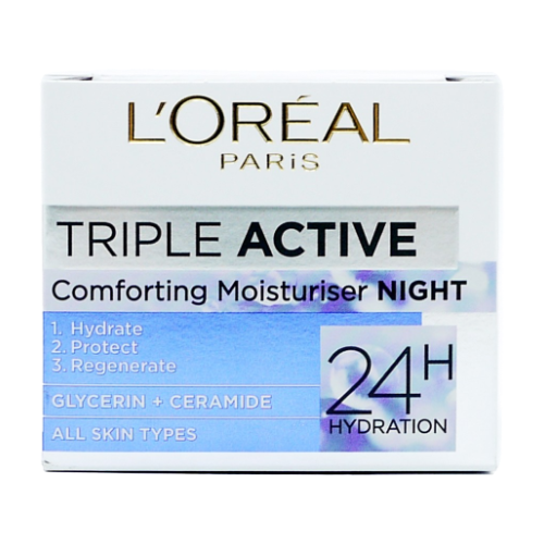 Treat your skin to intensive moisture and protection with L'Oreal Paris Dermo Expertise Triple Active Night Pot. Rich and luxurious, this multi-tasking cream protects the skin against UV rays, pollution, stress and tiredness, all of which can cause the skin to become dull and dehydrated.