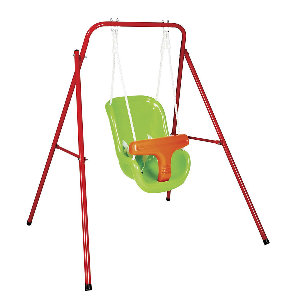 The swing is built with a stable metal A-frame structure for safety. It includes a high-backed plastic seat designed to support younger babies securely, complete with a safety restraint (typically a T-bar style) to keep them safe while they enjoy the soothing motion. Setting it up is straightforward, and when playtime is over, the entire frame folds down compactly. This Paradiso Folding Baby Swing offers a practical solution for bringing the joy of swinging to your baby, combining safety, comfort, and excellent space-saving convenience.