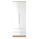 (Dimensions: H196 x W74 x D53cm) This tall double door wardrobe is perfect for any bedroom. Features the added practicality of 2 full width drawers. An exciting new range ideal for the modern contemporary home it comes with distictive indented handles, perfect for the 21st century home. All our furniture is made in the United Kingdom, to the highest quality. It is delivered direct to your location of choice by one of our two man delivery teams, and comes fully assembled - Please Note that any handles or legs may be removed durning transit to avoid the risk of damage.