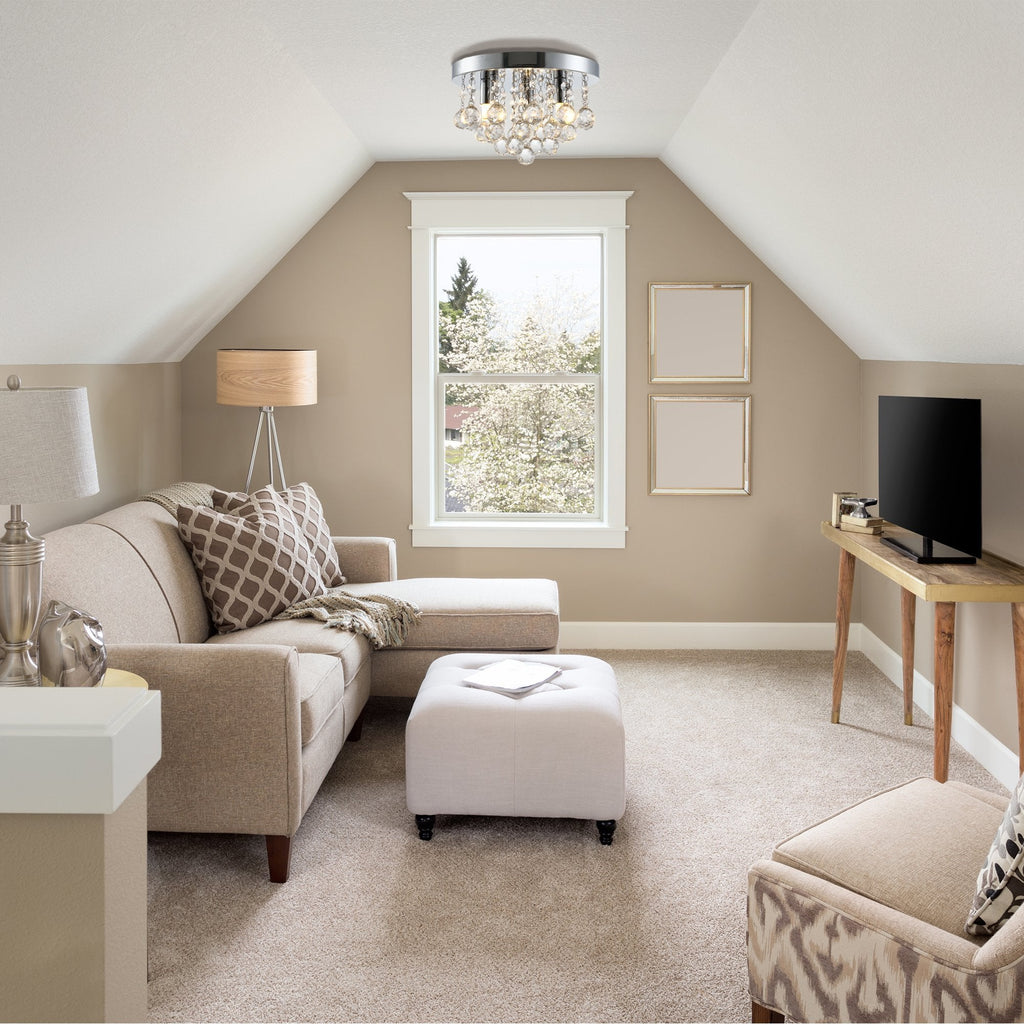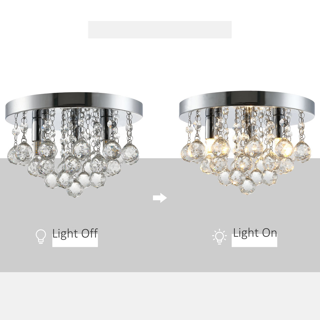 Infusing a touch of glamour into your everyday doesn't come easier than this. Bring this mini ceiling light into your home for it to sparkle all day and night. Using steel for the circular base so it holds securely in place on the ceiling, it's fitted with 26 crystallite balls, which are clear in finish so the lights glistens through beautifully. They're securely attached to the base with metal chains so they keep in place. Ideal for the bedroom, living room and areas you want to transform.