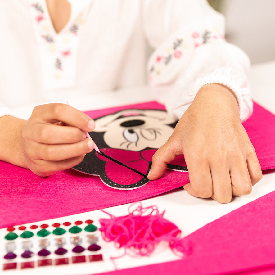 Encourage your childâ??s artistic expression with the Make your own Minnie Mouse felt bag. This craft kit allows kids to design and create their own Minnie Mouse-themed felt bag. With easy-to-follow instructions and high-quality materials, this kit sparks creativity and provides a sense of accomplishment. Let your little one showcase their unique style with this fun and functional craft project.