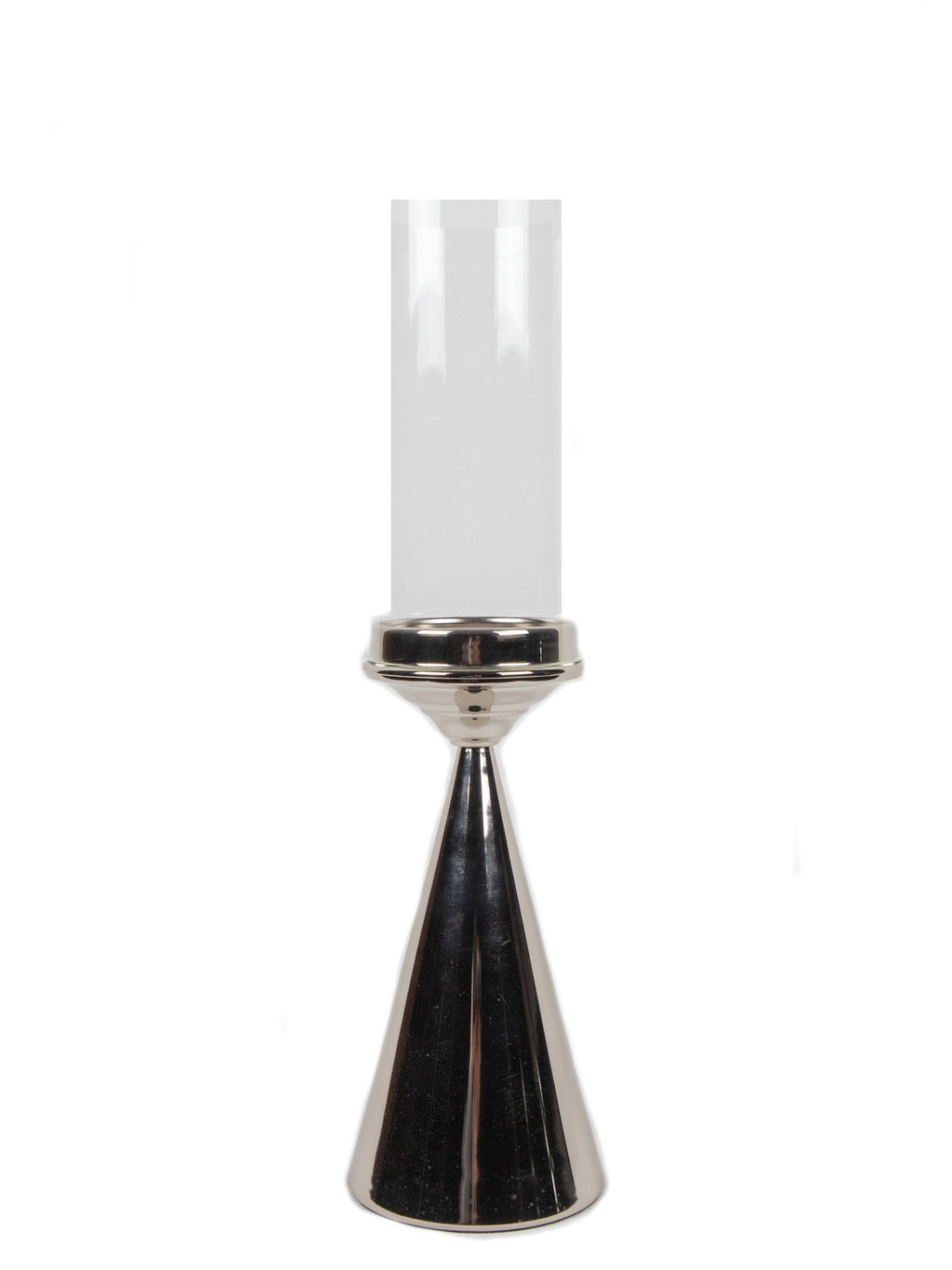 Mint Collection - Nickel Plated with Clear Glass Candle Holders - Nickel 11x11x50cm
