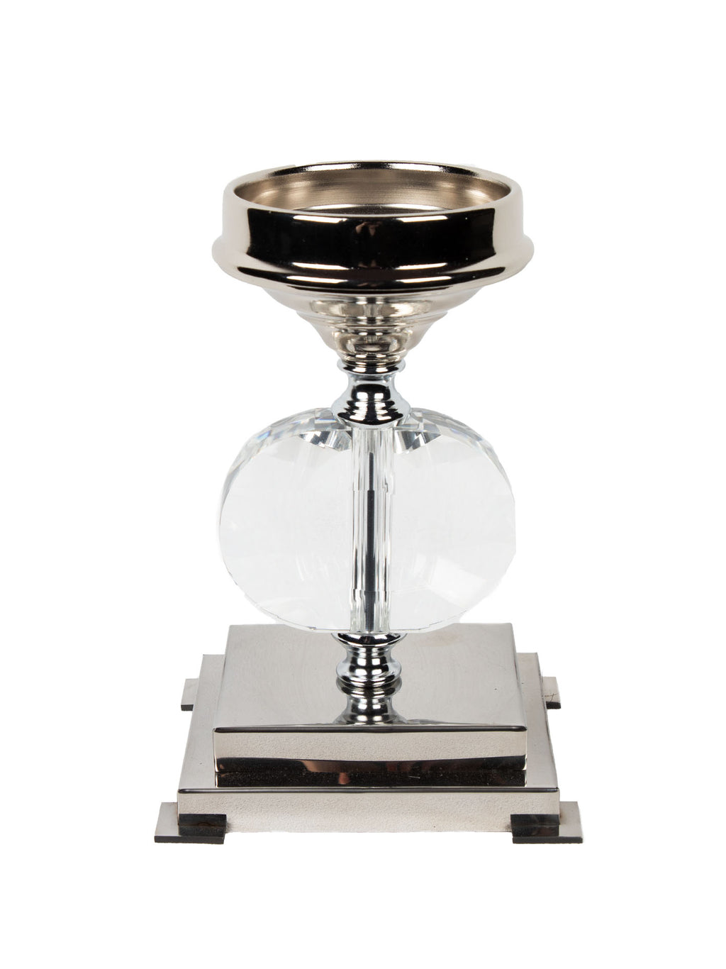 Mint Collection - Nickel Plated with Crystal and Glass Candle Holder - Nickel 14x11.5x38cm