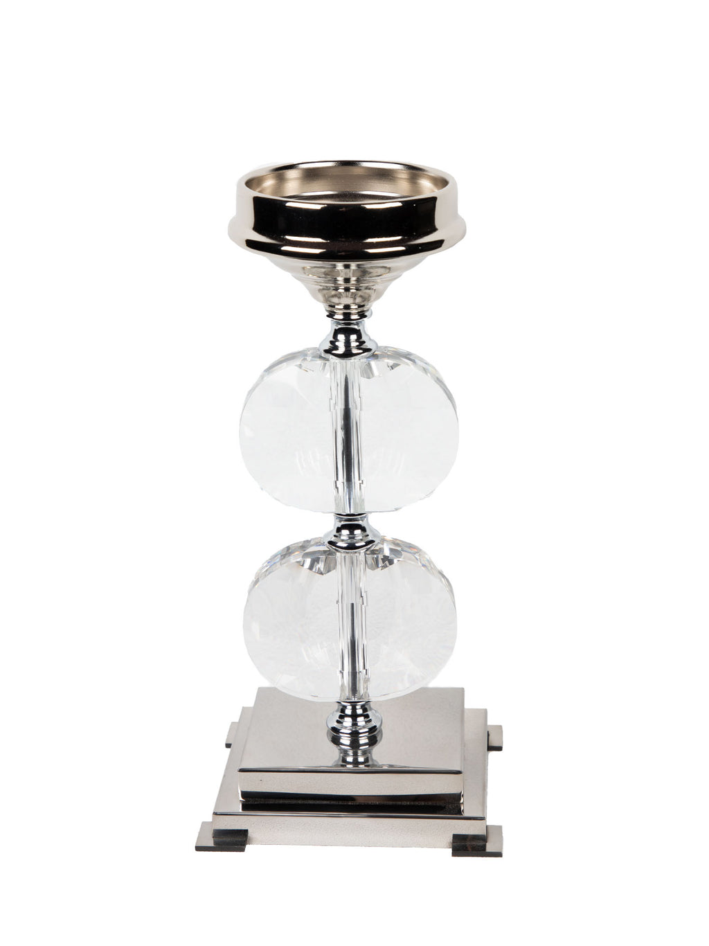 Mint Collection - Nickel Plated with Crystal and Glass Candle Holder - Nickel 14x11.5x46.5cm