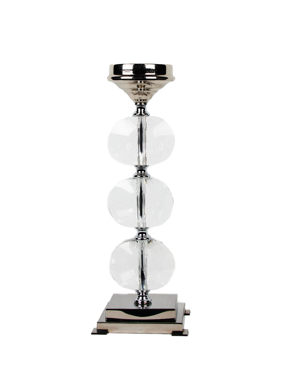 Mint Collection - Nickel Plated with Crystal and Glass Candle Holder - Nickel 14x11.5x55cm