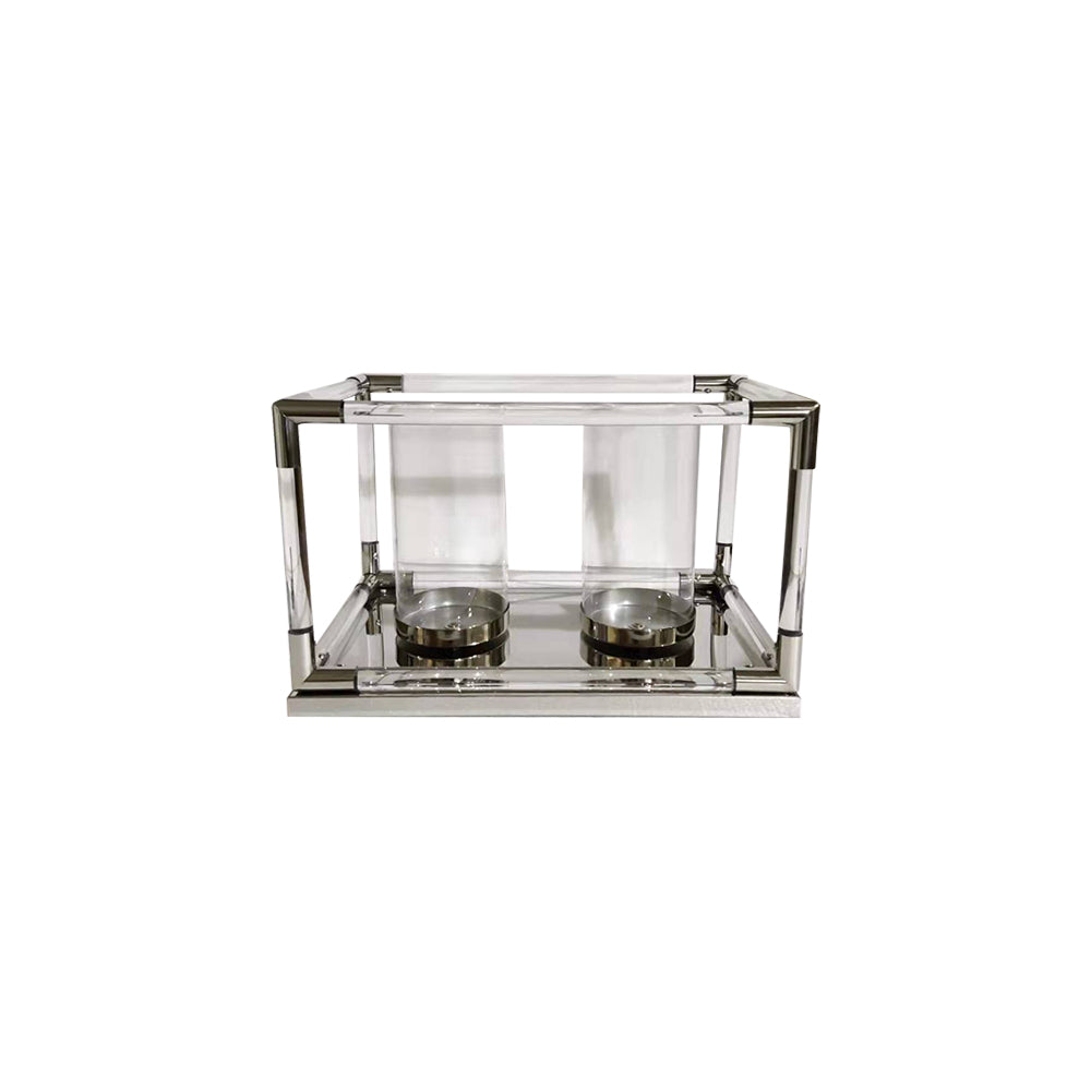 Mint Collection - Nickel Plated with Glass and Acrylic Candle Holder - Nickel 46x30x29cm