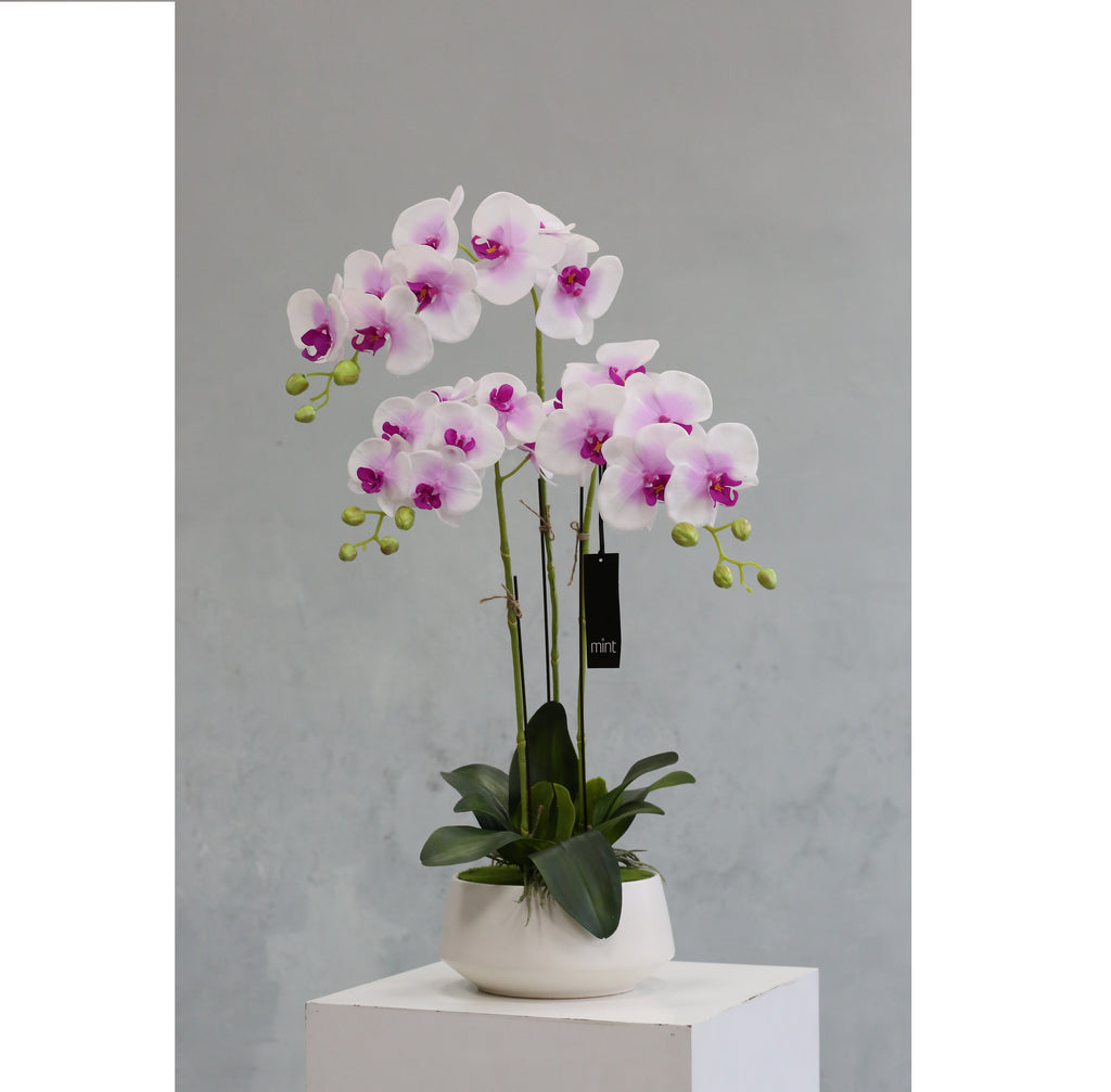 Mint Collection - Soft Pink Orchid in White Ceramic Pot - 3 Stems - 45x45x78cm