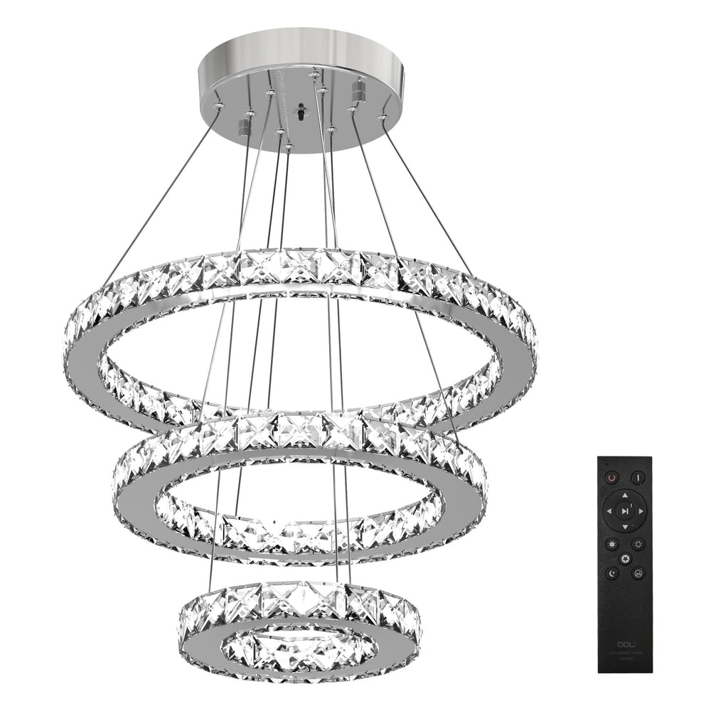 • LED CRYSTAL CHANDELIER: Modern elegance LED chandelier with three shining crystal rings, and remote controller for easily using, distance of up to 5m. Suitable for living room, bedroom, dining room, foyer, hallway using