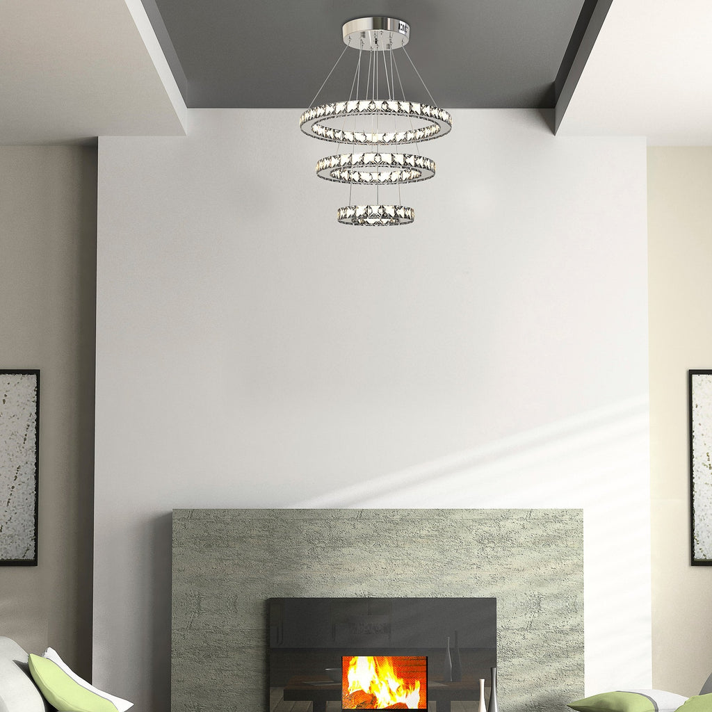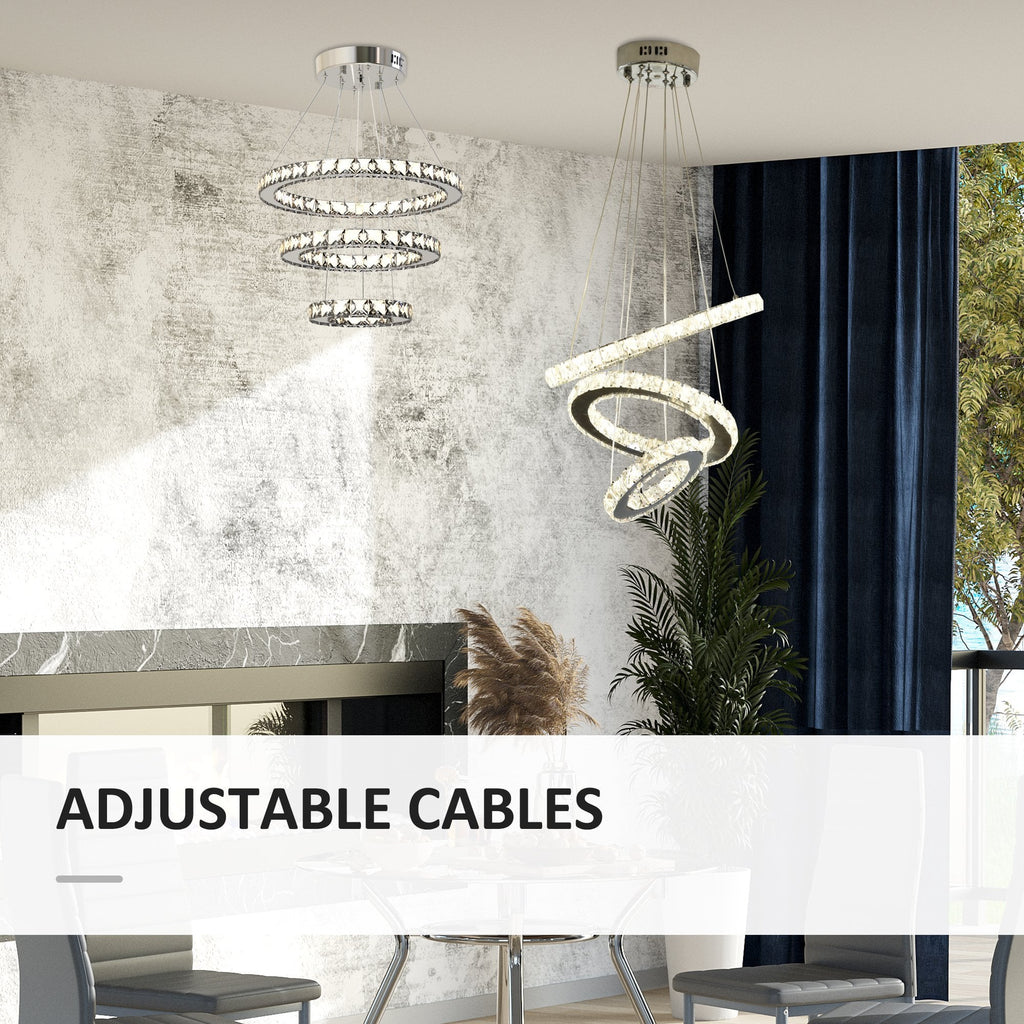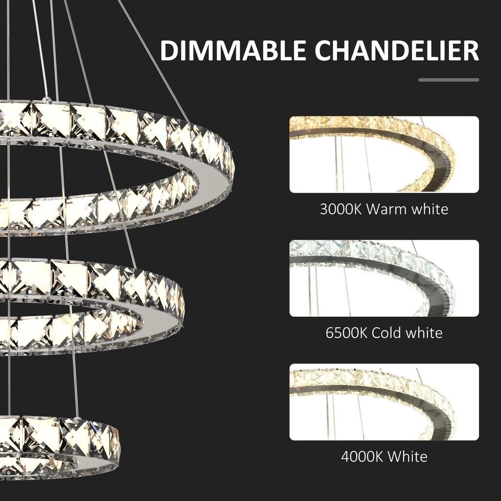HOMCOM Modern LED Chandelier with 3 Crystal Rings - Silver