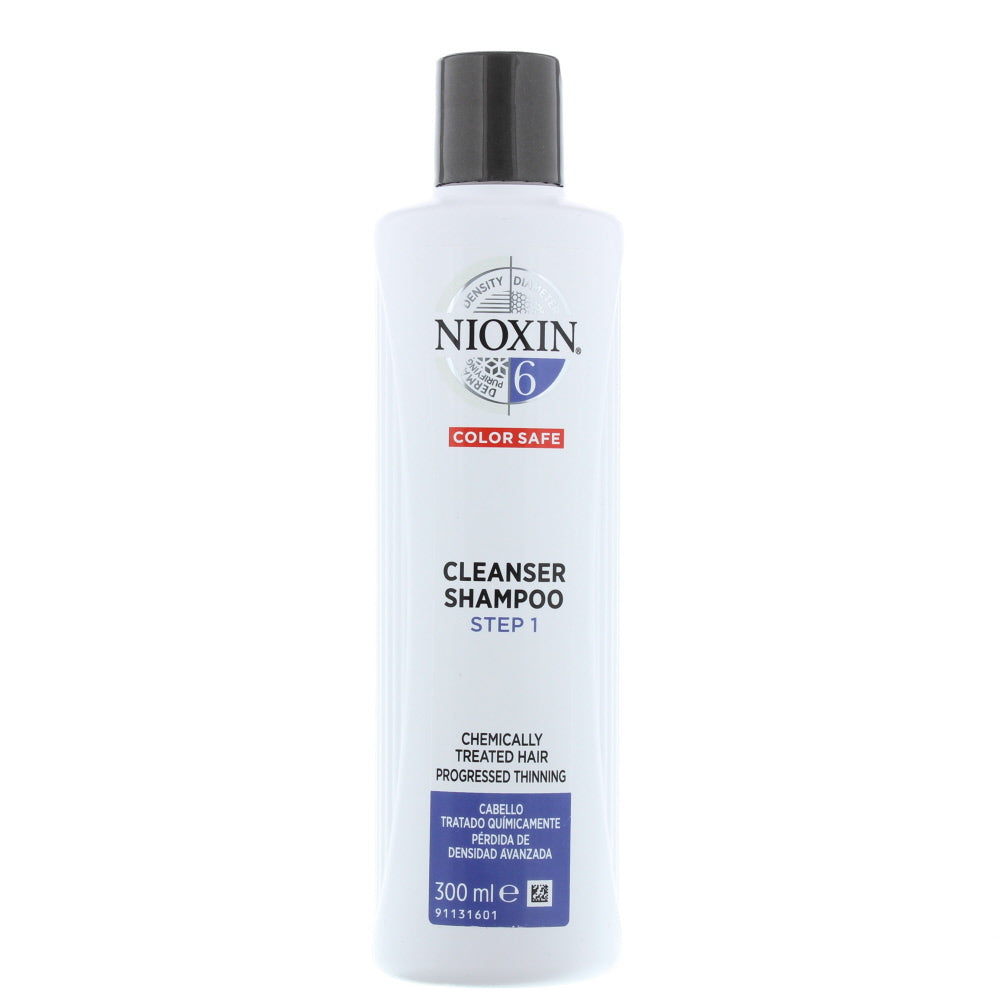 Nioxin Cleanser Shampoo 6 for chemicallytreated hair with progressed thinning cleanses to provide thickerlooking hair. It helps to remove follicleclogging sebum fatty acids and environmental residues from the scalp skin and hair. It is a part of System 6 which helps you achieve noticeably smoother and denserlooking hair.