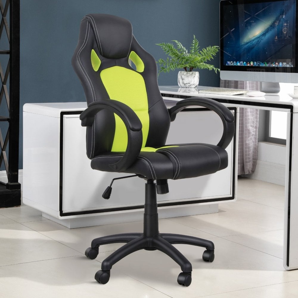 This racing seat styled office chair is a perfect solution for someone who is looking for something different. Made with comfort in mind, its 360 degree swivel and wheels to easily manoeuvre around the desk gives it the flexibility you would need in a chair. This office chair with arms is designed to fit in most environments and made with the highest quality materials.