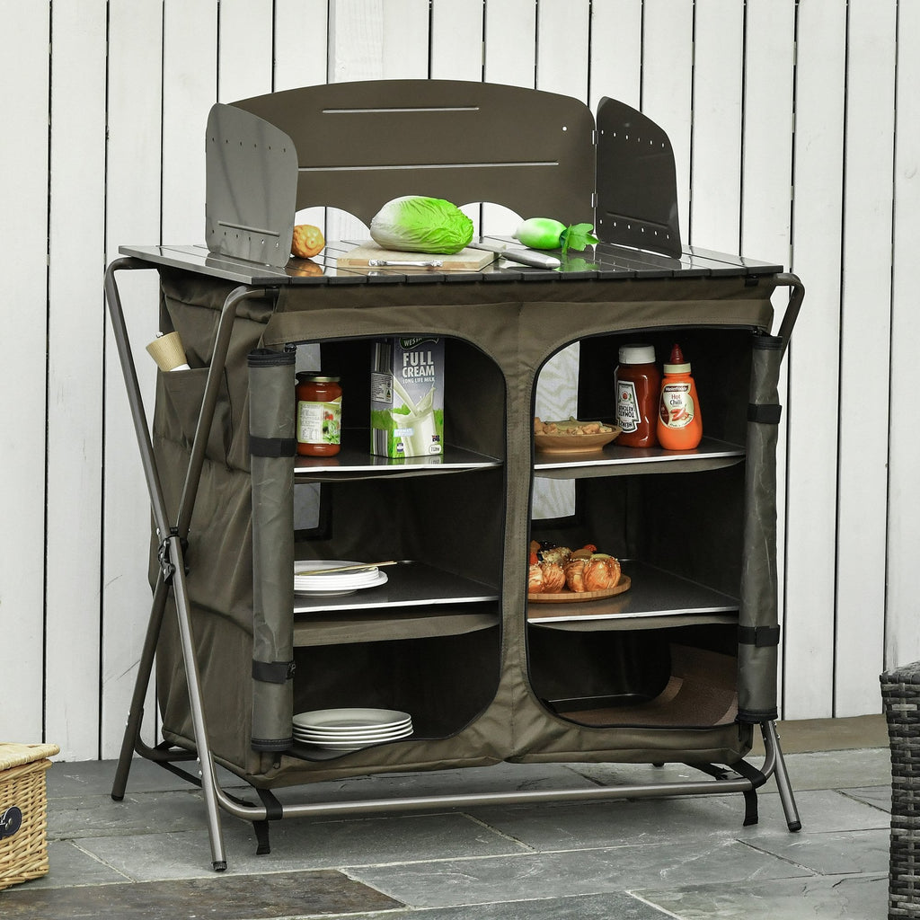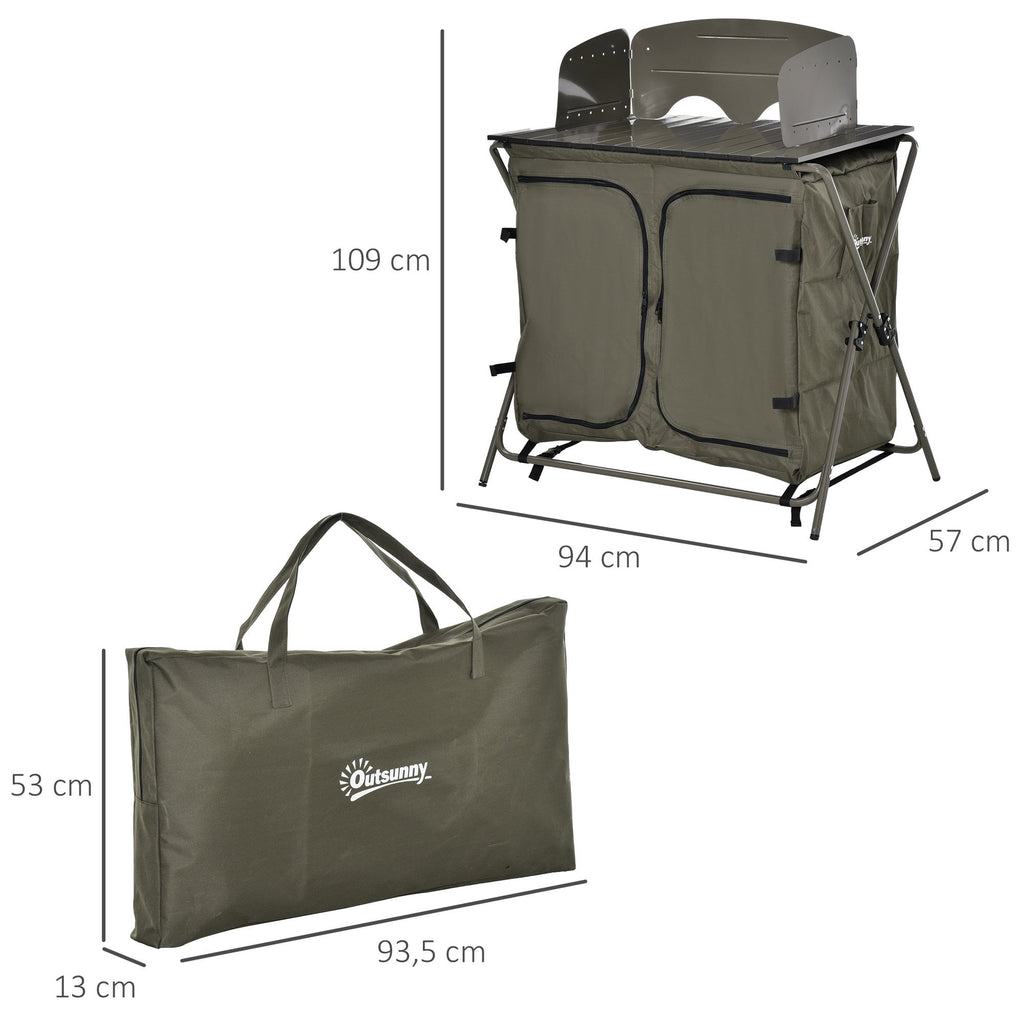 - MOBILE KITCHEN: Comes with an aluminum cooking table with a windshield, this portable kitchen cook station is the outdoor camping essential to enable you to enjoy a big meal anytime. Ideal for camping with tent, caravan, bus, and motorhome