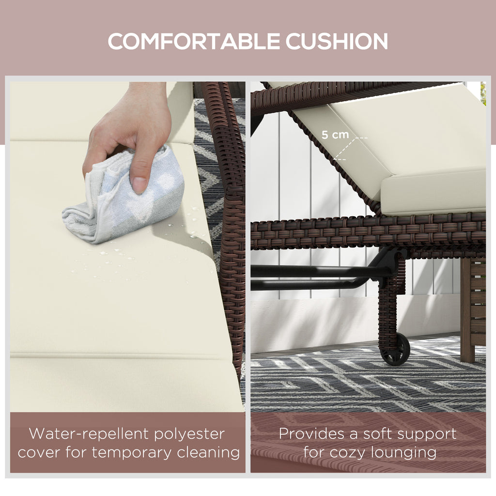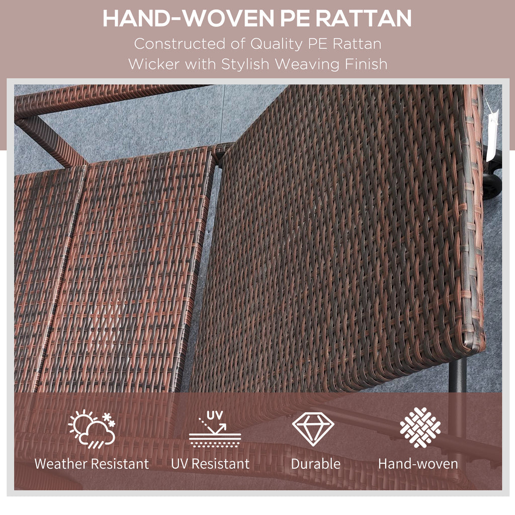 This outdoor rattan sun lounger from Outsunny is stylish and can fit with any garden decor. Constructed by all hand woven PE rattan wicker and metal frame for durability. 5-level adjustable backrest, which can match your body to provide relaxing and sleeping modes. With flexible wheels on both sides, the chaise chair can be easily moved from place to place as you like. Ensuring you will feel relaxed while sunbathing with our outdoor furniture.