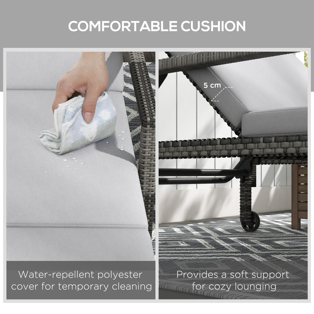 This outdoor rattan sun lounger from Outsunny is stylish and can fit with any garden decor. Constructed by all hand woven PE rattan wicker and metal frame for durability. 5-level adjustable backrest, which can match your body to provide relaxing and sleeping modes. With flexible wheels on both sides, the chaise chair can be easily moved from place to place as you like. Ensuring you will feel relaxed while sunbathing with our outdoor furniture.