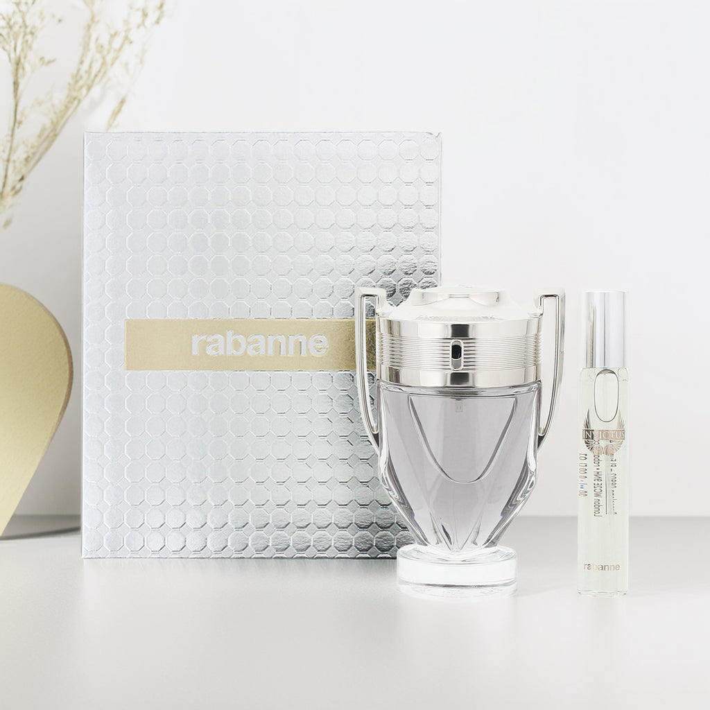 Paco Rabanne Invictus Gift Set, featuring a full-sized 100ml Eau de Toilette and a convenient 20ml travel-sized Eau de Toilette is an energising fragrance is crafted for the modern man who conquers challenges with confidence and charisma.