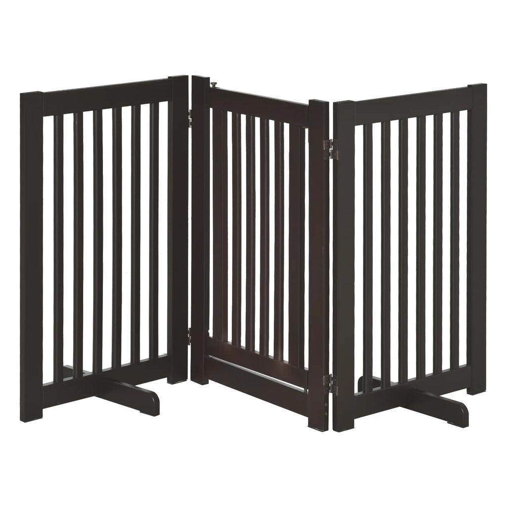 For when you need to keep your pets in one area at home, choose this freestanding pet gate from PawHut. A three-panel design which allows it to fit into spaces up to 155cm, MDF forms the frame for a solid and tough structure, with the panels connected together with hinges to move them into shape easily, with the middle door allowing easy entering and leaving. The bars on the panels keep your dog behind, without letting them feel closed off and it can be folded down easily for flat storage. It is finished with a latch on top of the middle door for security. Please note, this gate is suitable for small-medium sized dogs only.