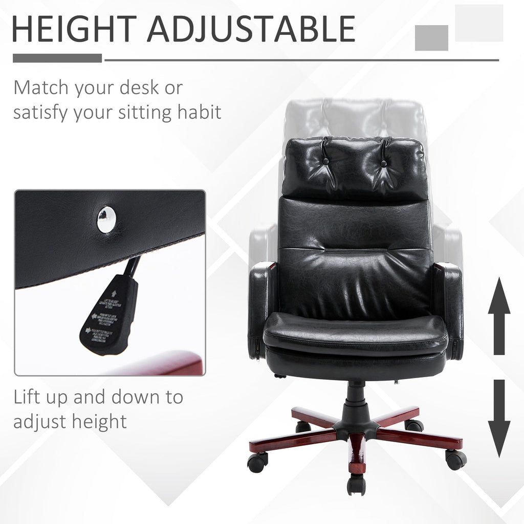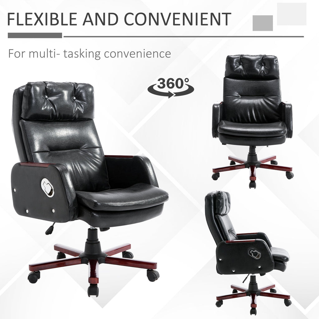 PU Leather Adjustable Office Executive Swivel Chair Armrest Computer Desk Reclining Arm Seat-Black
