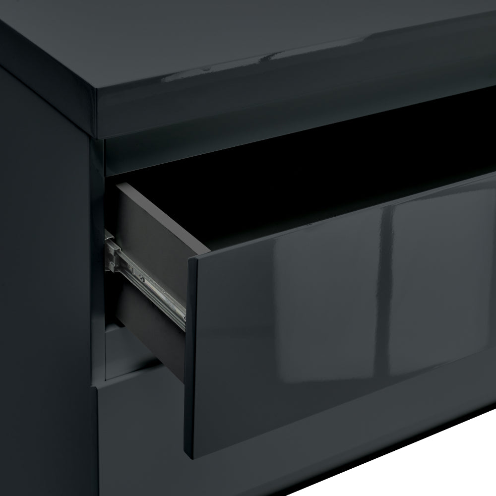 Taking the success of the colour choice in this range, we are pleased to offer Puro in a sleek and unique Charcoal Finish. Bringing you the same quality and chic look that has become synonymous with the Puro, the 4 Drawer Chest is comprised of 4, equal sized drawers with integrated handles and matching gloss carcass and top. Team this with other key items from the Puro Charcoal range to create a super-sleek finish with all the practical storage space required of a modern home.