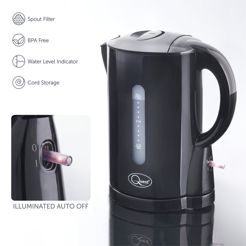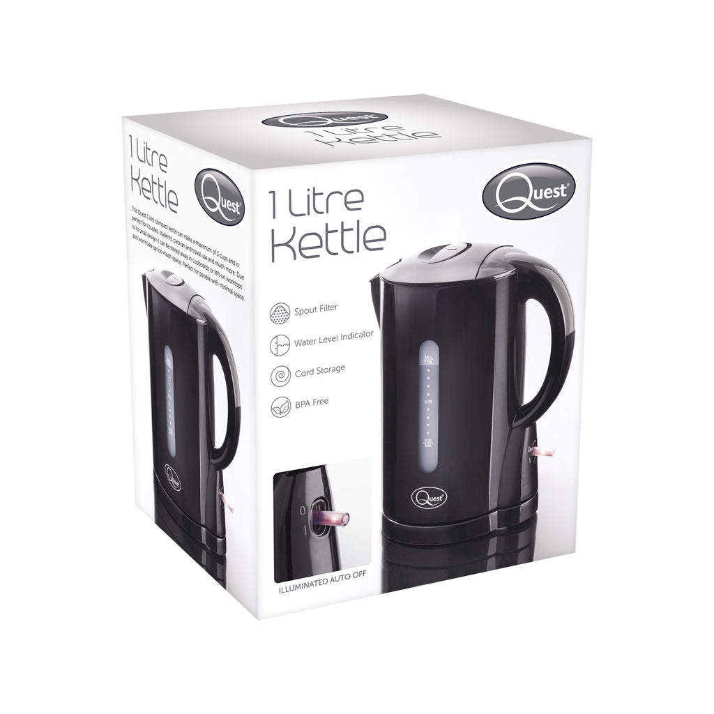 The Quest 1L compact kettle can make a maximum of 3 cups and is perfect for couples, students, caravan and travel use and much more. Due to its small design it can be stored away in cupboards or left on worktops and wont take up too much space. Perfect for people with minimal space.
