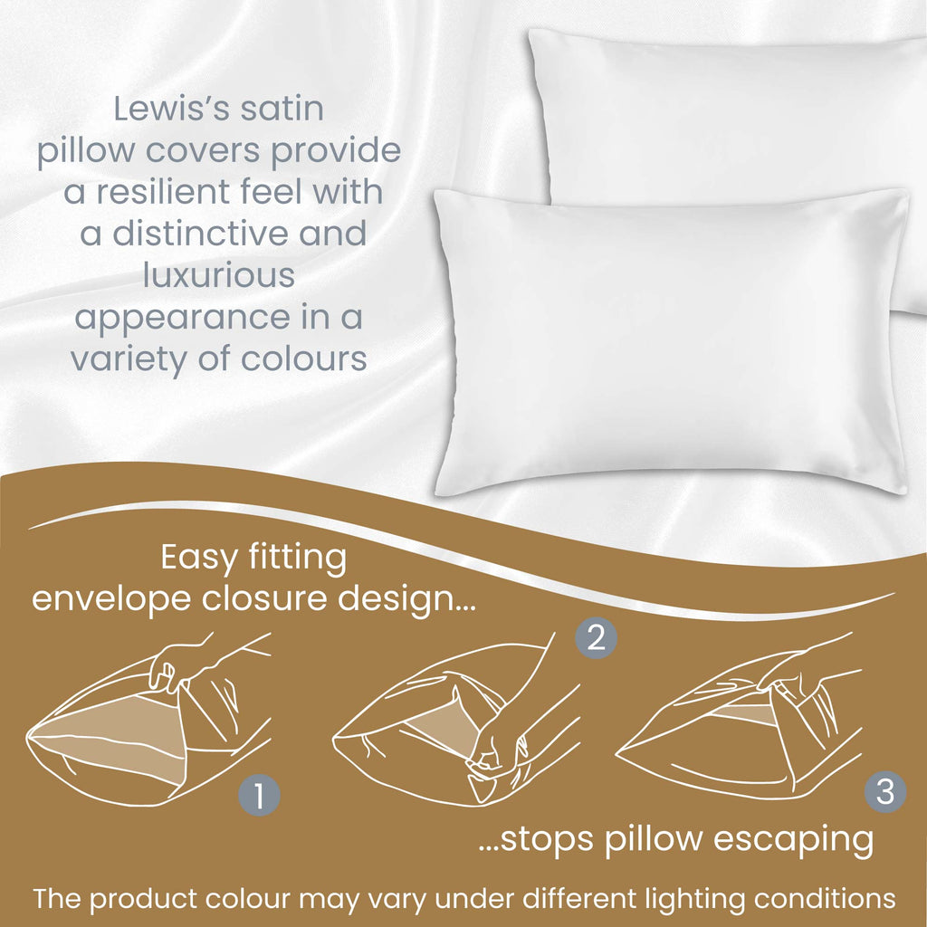 Lewis's Satin Feel 2 Pack Pillowcases - White