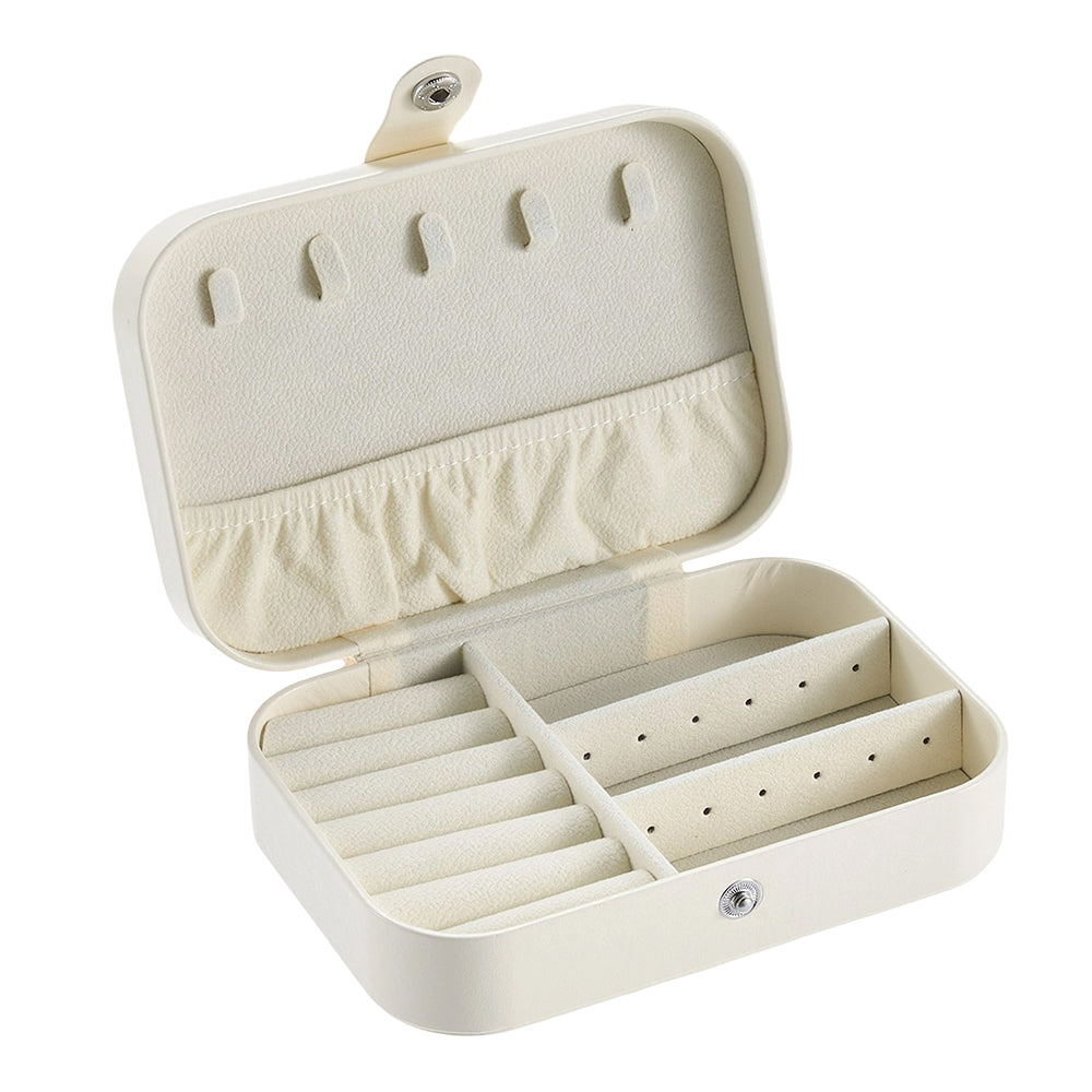 This stylish jewellery box keeps your accessories neatly organised while offering a portable and elegant storage solution. Wrapped in high-quality PU leather, it combines durability with a refined appearance. Inside, hooks and elastic storage pockets prevent necklaces and other items from tangling, while thoughtfully designed compartments accommodate earrings, rings, bracelets, and more. A removable partition provides flexible space for bangles, watches, hair accessories, or other small items, making this jewellery box ideal for both home use and travel.
