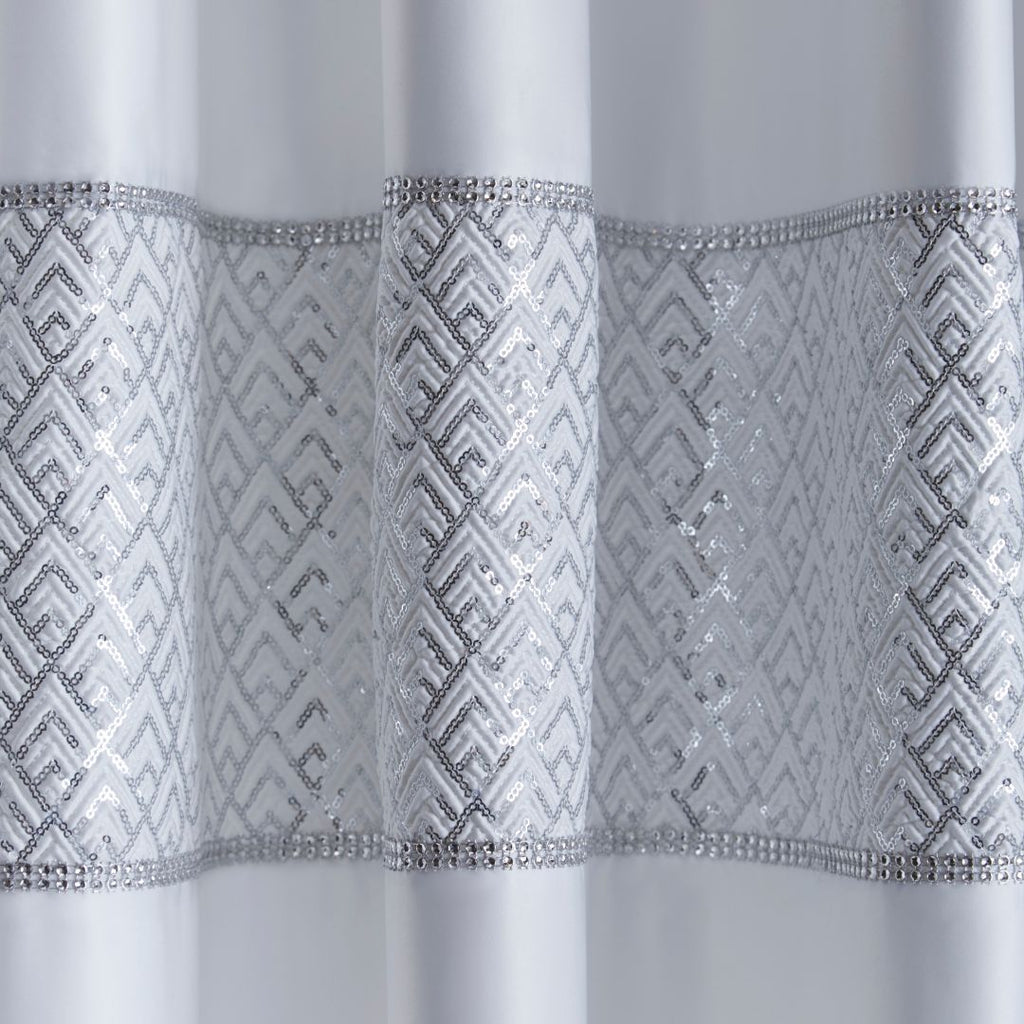 Sequinned curtains that will add glamour to any room .