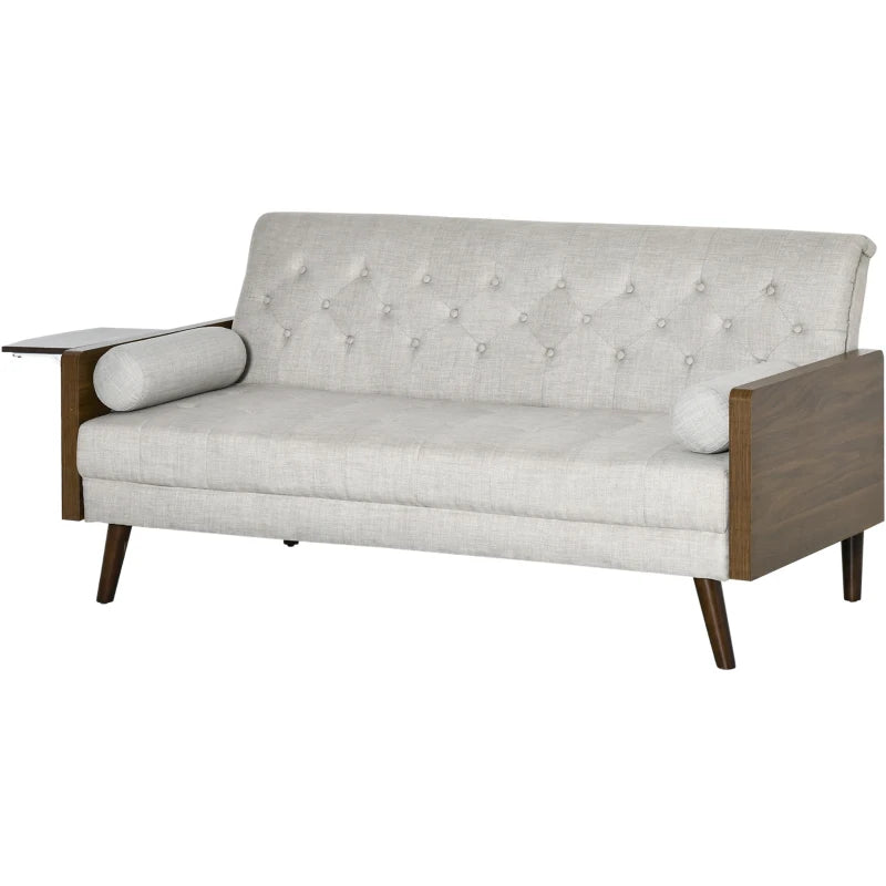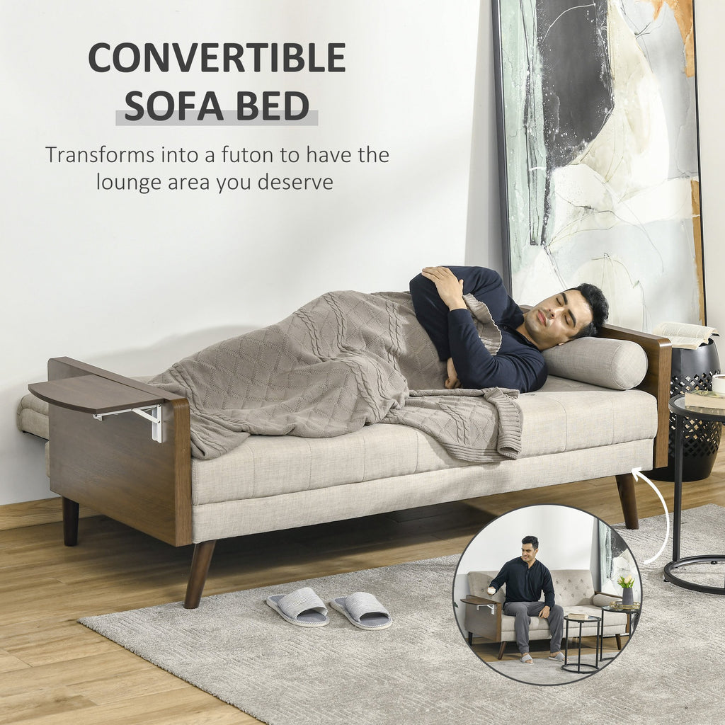 This three-seater HOMCOM sofa bed gives you space you deserve to relax and rest, day and night. The retro design creates a stand out look for something different in your home and living space. It comes with a three-position backrest, which easily changes position with its click-clack mechanism. Both the seat and backrest are thickly padded for comfort, with two long pillows for extra, plus support. With an easy pull-up side table, it's complete with wooden legs for full support.
