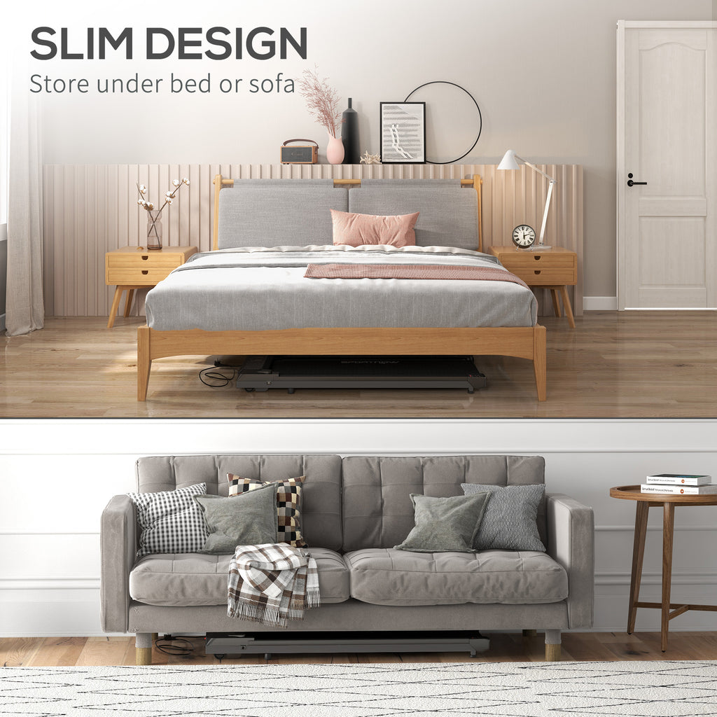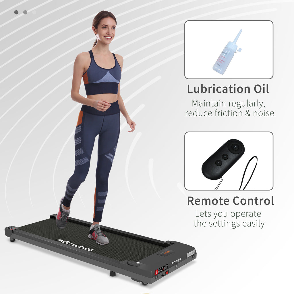 Introducing the SPOTNOW treadmill walking machine, letting you lead an active lifestyle from the comforts of home. Perfect for walking, its LED monitor tracks time, speed, calories burnt and distance, keeping you on top of your fitness goals. Made with a solid steel frame, the anti-slip surface keeps you safe and secure when exercising, whilst the remote control brings the flat treadmill to a swift stop. Two wheels at the end to move with ease, you can set up anywhere and begin working out!