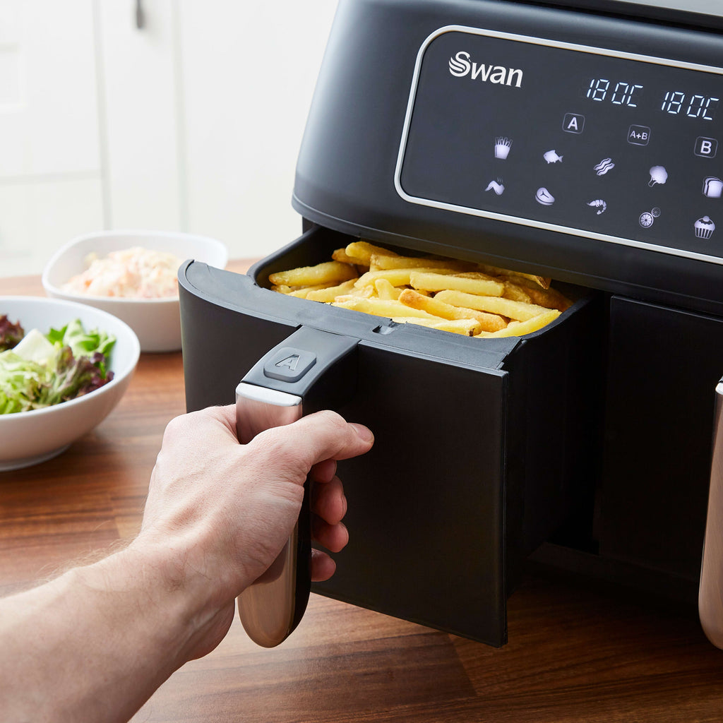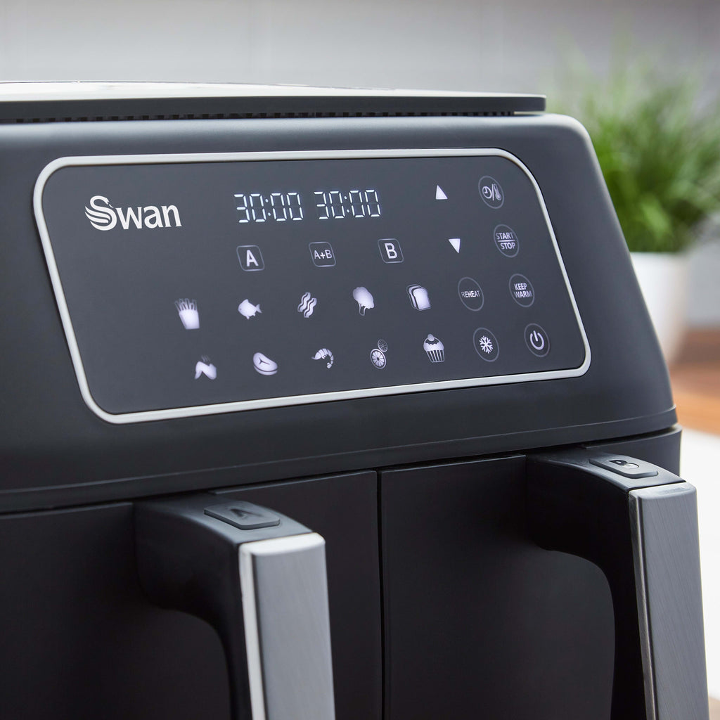 GENEROUS CAPACITY: With a 8 Litre cavity (4.5 per drawer) the Swan Duo Digital Air Fryer gives you the ability to cook up to 2kg worth of food per basket.