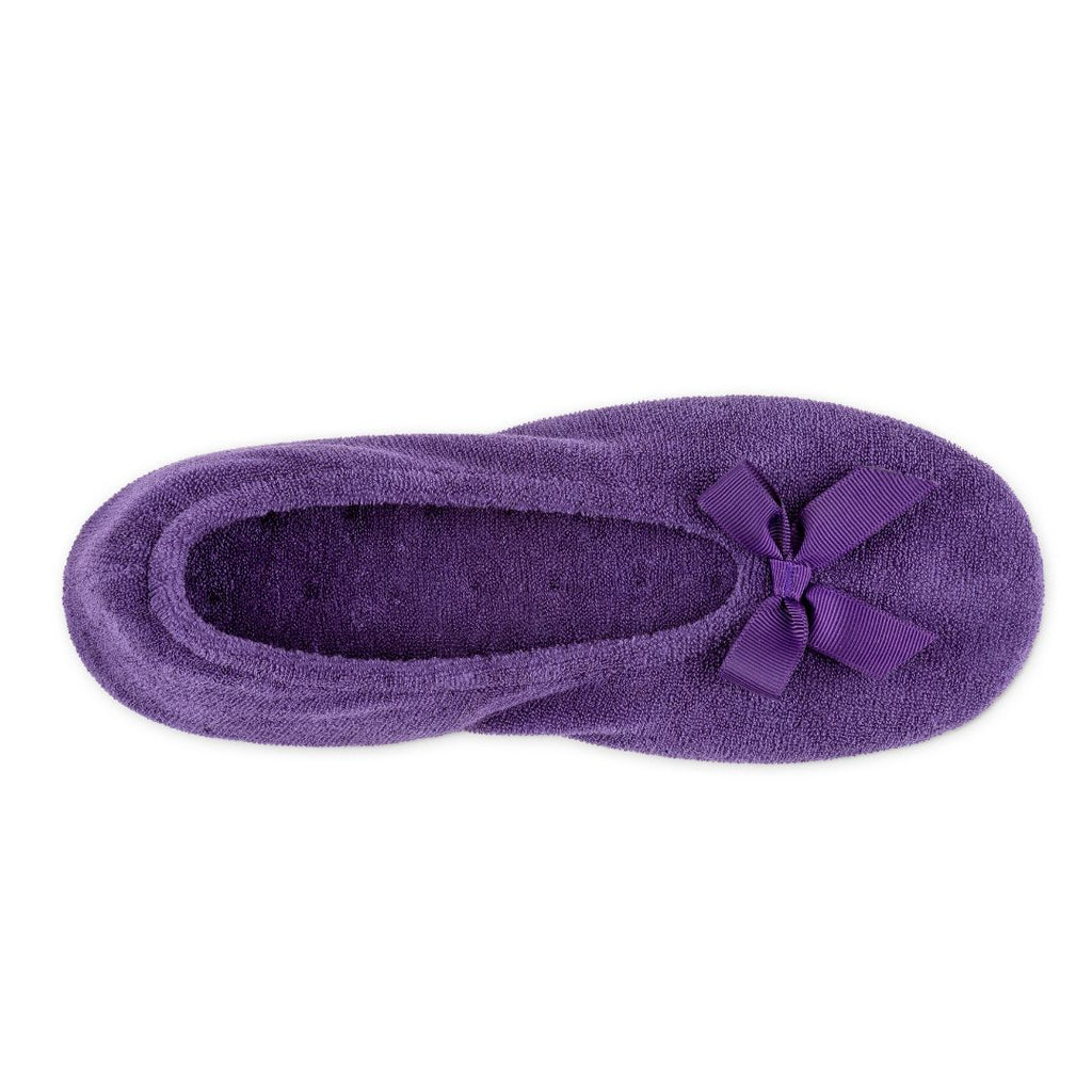 An Isotoner classic - the 4-way stretch, cotton rich Terry Ballerina Slipper features our unique patented Pillowstep tufted cushioned insole for extra comfort, plus they have a durable sole and are machine washable.