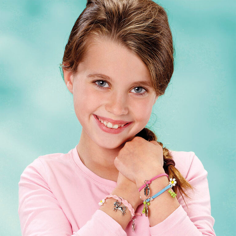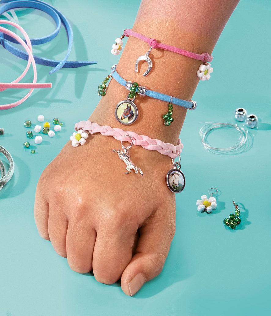 Make 3 charm bracelets with horse theme and decorate with horseshoe and metal horse charms